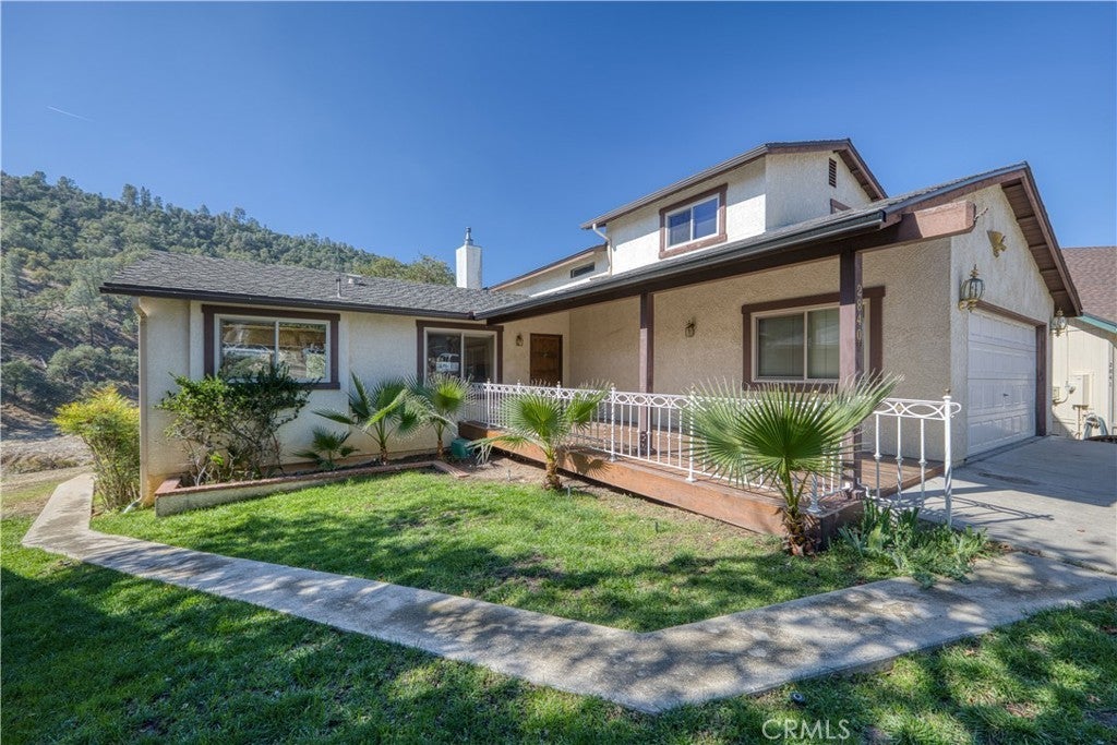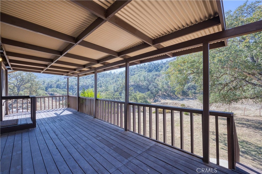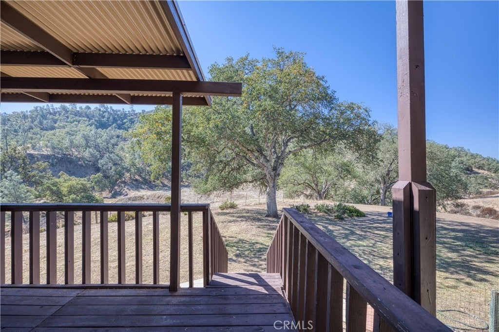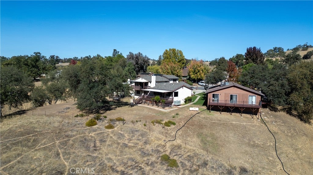 Located within the gated community of Heritage Ranch, this spacious split-level home offers 2,268 sq. ft. of interior living space including 4 bedrooms and 2 baths, plus multiple decks to take in the beautiful views of the tree-covered hills. The main level features a comfortable living room with a fireplace that opens to the dining area and kitchen, creating a warm and inviting space for entertaining. Step out onto the deck off the living room to enjoy peaceful views of the surrounding countryside. Up a short flight of stairs is the expansive primary suite with private deck and en suite bath with a large walk-in closet. A few more steps lead to an additional bedroom that could easily serve as a family room, office, or den. The lower level includes two more bedrooms, a full bath, and a laundry area—ideal for guests or multi-generational living. The attached 2-car garage provides ample parking and storage, conveniently accessed from the main level. Just behind the house is designated open space with a seasonal creek that meanders from the lake through the canyon. Enjoy the Heritage Ranch lifestyle with access to Lake Nacimiento recreation, and just 20 minutes from downtown Paso Robles with its fine dining, boutique shopping, and world-class wineries.