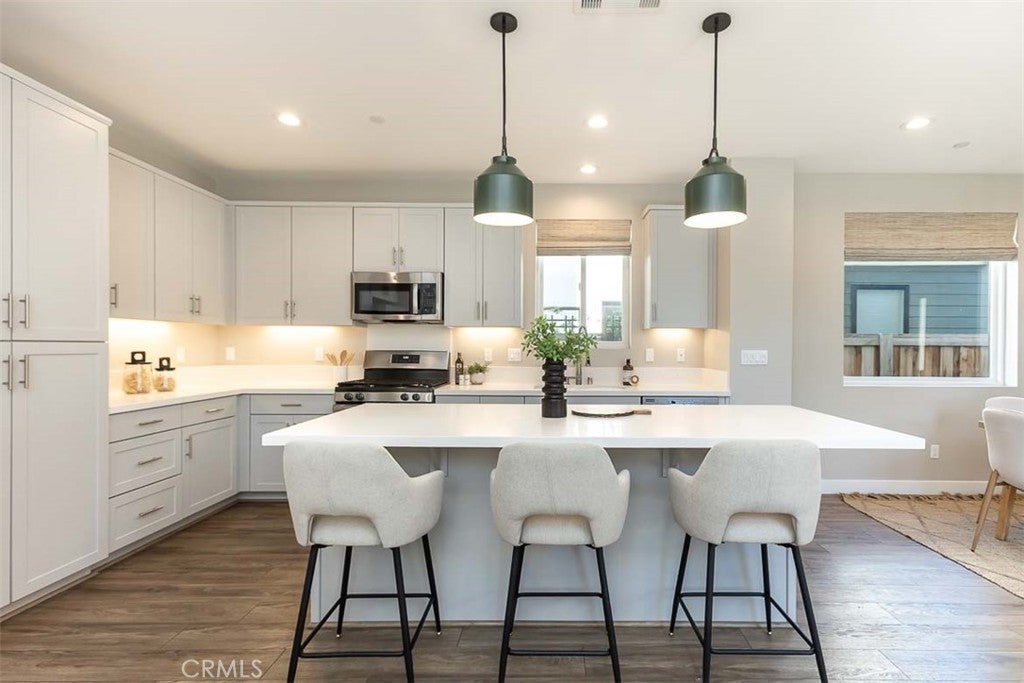 Buyer could not perform! Welcome to this beautifully designed contemporary home in the desirable Noveno community. Situated on a prime corner lot with mature landscaping, this residence offers a blend of modern style and everyday comfort in one of San Luis Obispo’s most sought-after neighborhoods. The open-concept main level features luxury vinyl plank flooring and Hunter Douglas electronic blinds. An 8-foot sliding glass door opens to a private side patio with pavers, creating a seamless indoor-outdoor living experience. The kitchen combines style and function with soft grey cabinetry, Caesarstone solid-surface countertops, pendant lighting, and a spacious center island perfect for entertaining. Upstairs, the primary suite includes a walk-in closet that has been thoughtfully modified to include a private office—easily converted back into a larger closet if desired. The en-suite bathroom features a dual vanity, walk-in shower, and private water closet. Two additional bedrooms enjoy beautiful views and share a hall bath with dual sinks. A generous laundry room with abundant storage and built-in hampers completes the upper level. The insulated garage has been enhanced with a wood accent wall, creating a versatile space for work or play. Additional conveniences include alley access and a dedicated third parking space. Residents of Noveno enjoy a tight-knit community with nature paths, nearby parks—including a new neighborhood park slated to break ground in Fall 2025—and close proximity to downtown, beaches, shopping, and local wineries.