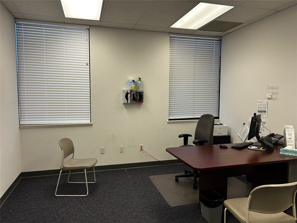 This freestanding building has excellent exposure and freeway access. It is comprised of perimeter offices, an open work area, a break room, two restrooms, and a storage area with roll-up door. There are 22 parking spaces (1/241 SF). Please do not disturb occupants.