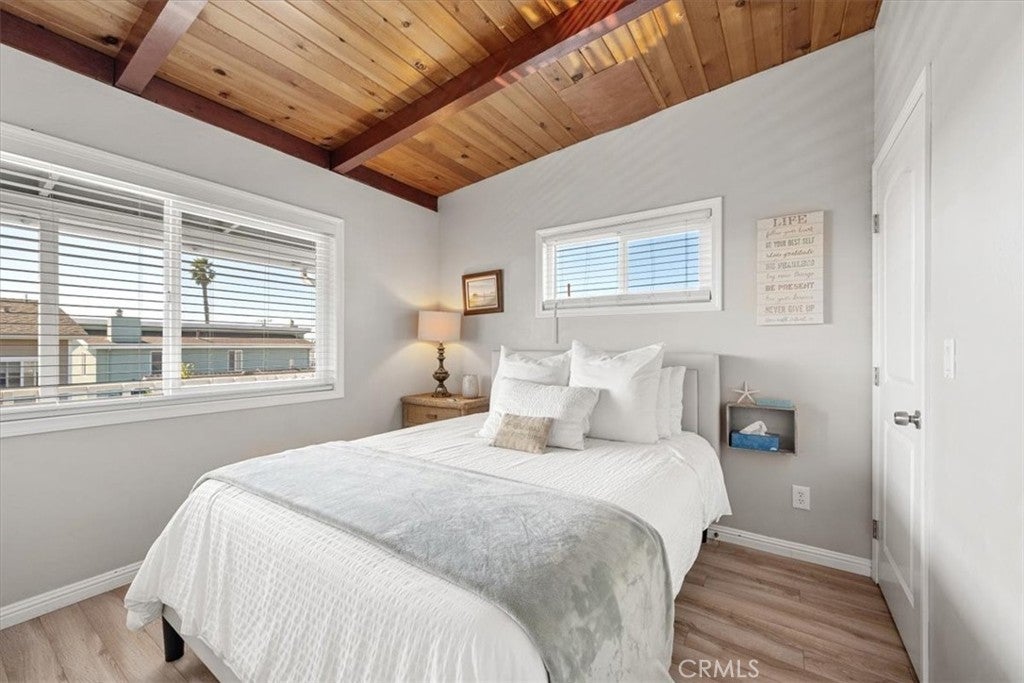 Enjoy ocean and Morro Rock views from this two story, 3 bedroom 3 bath home with short distances to the beach and shopping. Upstairs you will find a fully furnished 2 bedroom 1.75 bath home featuring open beam ceilings, laminate flooring, dual pane vinyl windows, granite countertops, modern appliances and on demand water heater. It is currently being used as a vacation rental. The upstairs deck is the perfect spot for morning coffee or evening unwinding to picturesque sunsets. The lower level is set up as a separate In law or guest studio complete with a full bath and stacked laundry unit, ideal for guests, extended family or rental potential. A single car garage for your car and/or additional storage with laundry hook ups. Driveway has plenty of parking. Whether you're looking for a second home or a weekend retreat, it's move in ready! This property offers a lot of options for someone looking to enjoy the Morro Bay Beach Lifestyle in a great spot.