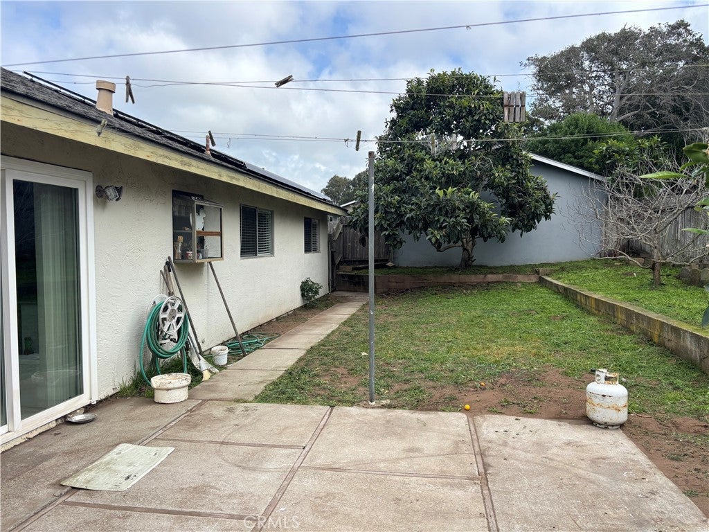Desirable neighborhood of Morro Palisades in Los Osos! This home is on Woodand Drive near local schools, restaurants, Sea Pines Golf Course, hiking trails and shopping. RV parking in front with power and water access. Beautiful fruit trees produce apples. lemons, apricots and loquats. Fireplace in cozy family room has a gas connection with fan. Leased solar panels, 8-foot work bench with a stainless-steel top, sink with hot and cold tap, and built in storage cabinets in garage.