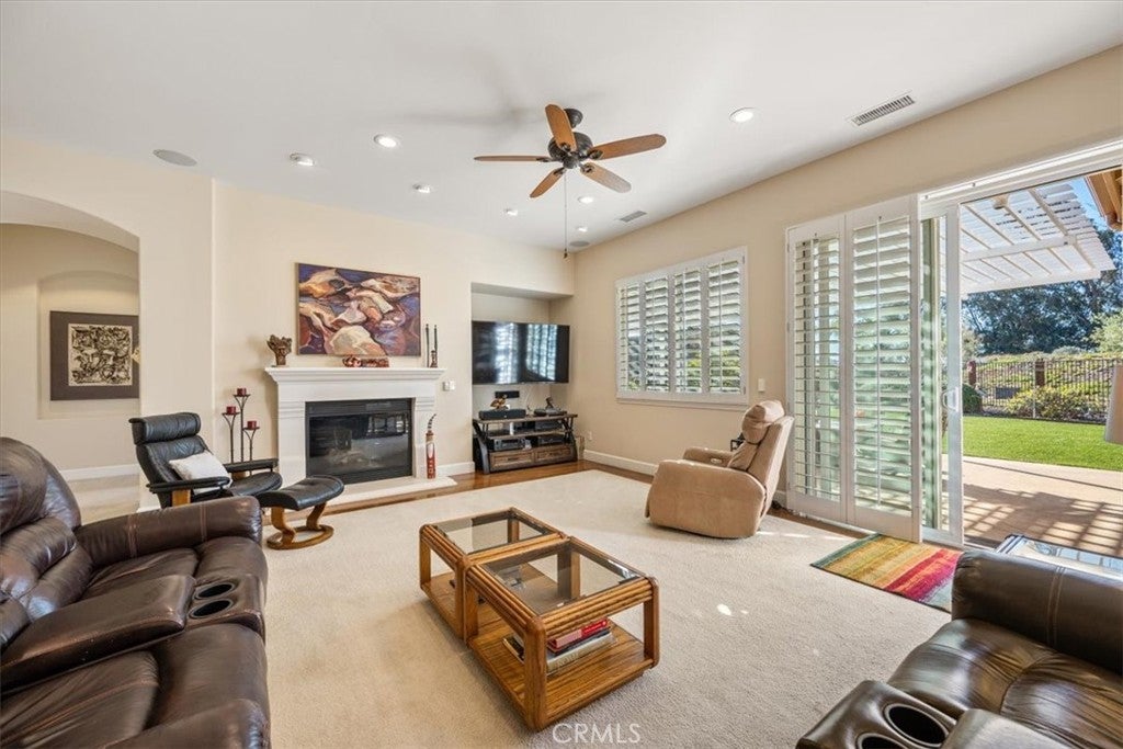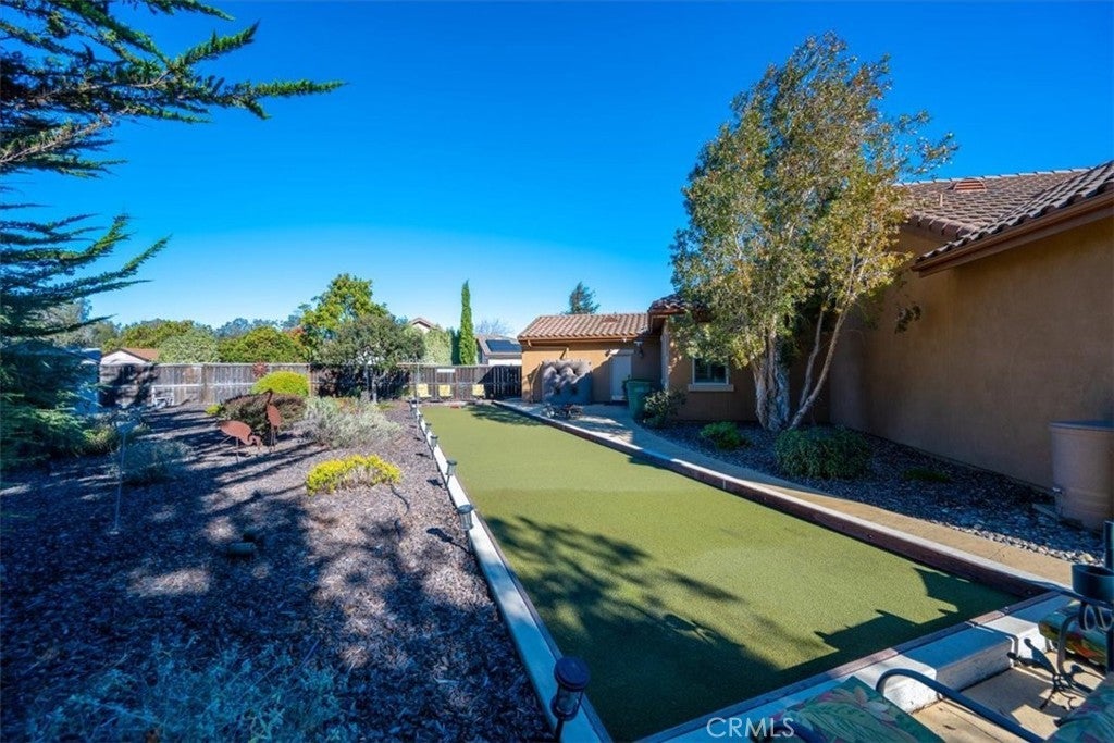 Beautiful, spacious, and exceptionally maintained, this single-level home on 2.07 acres is located in the Mesa area of Arroyo Grande and offers an ideal blend of privacy, open space, and modern comforts. Built in 2005, this 3-bedroom, 3-bath home features 2,526 sq ft of thoughtfully designed living area with tall ceilings, skylights, and abundant natural light throughout. The open floor plan includes a large great room with a gas fireplace and remote control, an inviting dining area, and a comfortable breakfast nook. The kitchen offers granite counters, a large island, stainless appliances, a 6-burner KitchenAid cooktop, double oven, wine fridge, and a newer GE Monogram refrigerator—perfect for both everyday use and entertaining. Each bedroom has its own full bathroom, offering privacy for family or guests. The owner’s suite includes a walk-in closet, dual vanities, natural stone finishes, a separate shower, and a jetted soaking tub. Interior upgrades include tile and wood flooring, plantation shutters, surround sound speakers inside and out, solar lighting tubes, indoor laundry with sink and storage, and an alarm system. The home is also wired for a generator and equipped with a tankless water heater. The fully landscaped grounds are designed for enjoyment and low maintenance, featuring artificial turf in the front and back yards, stamped concrete, an HD aluminum pergola, and a natural gas connection for the BBQ. Outdoor amenities include a bocce ball court, horseshoe pit, hot tub, and a large, fenced backyard with two gates that opens to the greenbelt behind the property. A 21-panel owned solar system and a rainwater collection system are also included. An attached 3-car garage with built-in cabinetry offers abundant storage. This home combines comfort, function, and spacious living in one of Arroyo Grande’s most desirable rural neighborhoods. A truly fantastic opportunity to own a well-appointed property with extensive upgrades and room to relax, entertain, and enjoy the Central Coast lifestyle.