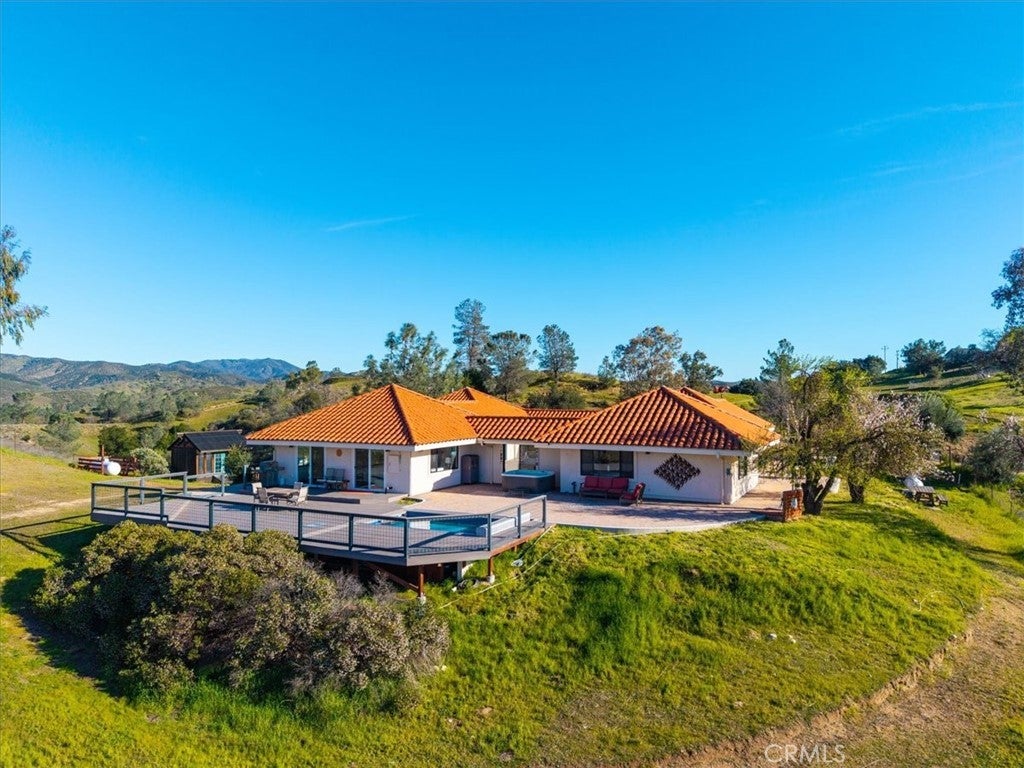 Tucked away at the end of Random Canyon in Creston, CA, on the back side of Santa Margarita, CA, this private rural retreat offers an exceptional blend of serenity, panoramic views, and versatility in the heart of San Luis Obispo County. Positioned behind 2 private automated gates, one at the main road and a second at the entry of the property, the estate opens to sweeping rolling hill views visible from nearly every room. Designed for seamless indoor-outdoor living, the expansive newer Trex decking creates a stunning entertaining space featuring a lap pool, spa, outdoor shower, and generous lounging areas - all perfectly positioned to capture the surrounding landscape. Beautiful open concept inside with wood beams in the living room, dining, and kitchen area. The primary bedroom has a large room behind it, currently used as an office but could be a baby room, large walk-in closet or possibly consider opening the space to make the primary room larger. At the heart of the home, a beautifully designed private courtyard showcases new pavers that wrap around the entire residence, offering multiple outdoor seating areas ideal for entertaining, quiet mornings, or sunset evenings under the Central Coast sky. Equestrian and hobby enthusiasts will appreciate the small barn and usable pastures, while, the spacious bonus room adjacent to the garage offers flexible space for a workshop, studio, gym, or creative retreat. Buyers may explore the potential for ADU conversion (subject to county approval), adding even more long-term value and opportunity. Additional features include a carport, dual gated access, a greenhouse, and exceptional privacy with room to expand or customize. If you're seeking space, views, and peaceful country living just a scenic drive from town, this Creston property presents a rare opportunity to own a private Central Coast retreat.