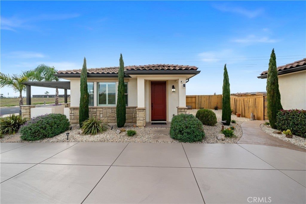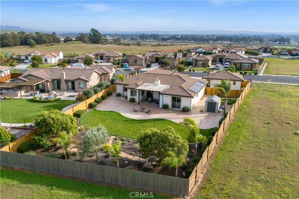 Multi-generational living or income producing opportunity in the exclusive Enclave at Costa Pacifica community, which is perfectly positioned to enjoy the natural beauty of the Nipomo Mesa and the special lifestyle the Central Coast offers. Situated on an elegantly landscaped, nearly one-half acre parcel, this single level residence features a versatile layout with nearly 2,800 square feet of living space, four spacious bedrooms, four luxuriously appointed baths, and a detached one bedroom and one bath guest house. The home features upscale finishes like voluminous ceilings, smooth trowel-finished walls, and 8' interior doors, along with approximately $85,000 in upgrades, including plantation shutters, since its construction in 2016. A comfortable space to unwind after a day of wine tasting in Santa Maria Valley or relaxing at Pismo Beach, the living room includes a cozy fireplace with a concrete mantel/hearth, and dual sliding doors. The heart of the home, the kitchen, is an entertainer’s dream. An expansive island with bar seating, pendant lights, and granite counters with a stone backsplash makes it both functional and stylish. Further enhancing the space is premium cabinetry with soft-close doors/drawers, stainless steel appliances with an included refrigerator and hood vent, a sunny breakfast nook, and an adjacent dining room. The owner’s suite, a private upscale retreat, offers a spacious walk-in closet, rear patio access, and en-suite bath featuring dual sinks, tiled counters, soaking tub, and a walk-in shower with a frameless glass enclosure. Three secondary bedrooms in the main residence, including one with an en-suite bath, provides plenty of room for guests, and offers flexible uses including a home office or fitness space. The one-bedroom detached casita features a living room, kitchenette, washer/dryer, and a large private patio. The outdoor spaces complete the elevated experience this property offers. An expansive stamped concrete patio, lush park-like setting with lawn, pepper and olive trees, and landscape lighting set the stage for relaxation. The backyard features a firepit, flagstone walkways, garden area with fruit trees, stained fencing, and patio cover with skylights-perfect for hosting BBQs while soaking in mountain and sunset views. Additional highlights include a three-car garage, laundry room with sink and included washer/dryer, storage shed on concrete pad, tankless water heater, owned solar system, and a water softener.