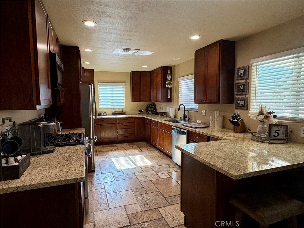 Welcome to this beautifully updated 3-bedroom, 2-bathroom home in Chino. Boasting approximately 1,800 sq ft, this home offers a bright and open living space with tumbled travertine floors throughout. The newly remodeled kitchen has granite counter tops and flows seamlessly into the dining area, while the generous backyard provides plenty of room for outdoor fun or gardening. Thoughtfully improved throughout, this home features all new double pane windows, a whole house fan, skylight in bathroom, and a newer roof (approximately 4 years old) for added comfort and efficiency. The spacious primary suite includes a Jacuzzi soaking tub and french doors that open directly to the back yard, creating a relaxing private retreat. Additional highlights include a 2 car garage and a well designed layout ideal for everyday living and entertaining. Conveniently located near schools, parks, and shopping - this home is truly move in ready. Don't miss the opportunity to make this inviting property your own!