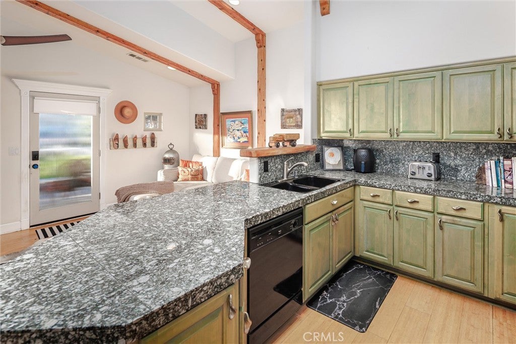 Prime Cayucos location with Ocean view. Residence is located across from the 3rd Street Park which provides expansive green views and plenty of parking. This stylish single level Craftsman style single home was completely rebuilt in 2000. The exterior features white pillars with shake siding and an inviting portico and courtyard. The courtyard fencing and garden are lovely and creates an extension of the house. Inside the house has a spacious great room with vaulted ceilings, open beams and skylights with a big window area that provides ocean views. The kitchen is well equipped, nice appliances, custom cabinets, with abundant granite counter space. The primary and guest bedrooms have vaulted and beam ceilings in both, as well as skylights, and open to the spacious backyard by sliders. The primary bath has a corner shower with a large jetted soaking tub with backyard views. The bedrooms enjoy an abundance of light with generous size, skylights, and sliders to the backyard. The lovely and spacious backyard is south, facing, and boasts an easy care landscaping, mature trees, hard scape, and wood decking. It gives a very private sanctuary atmosphere. A very desirable location for this single level residence, with easy access to town and just steps to the sand. Enjoy the sounds of the waves and the sea life.