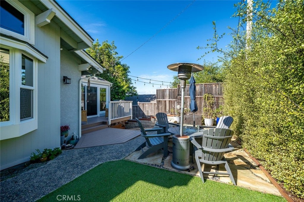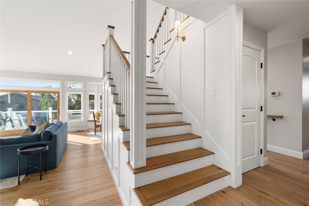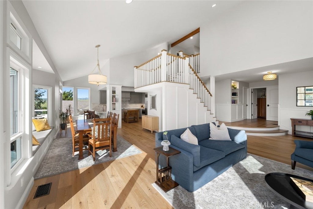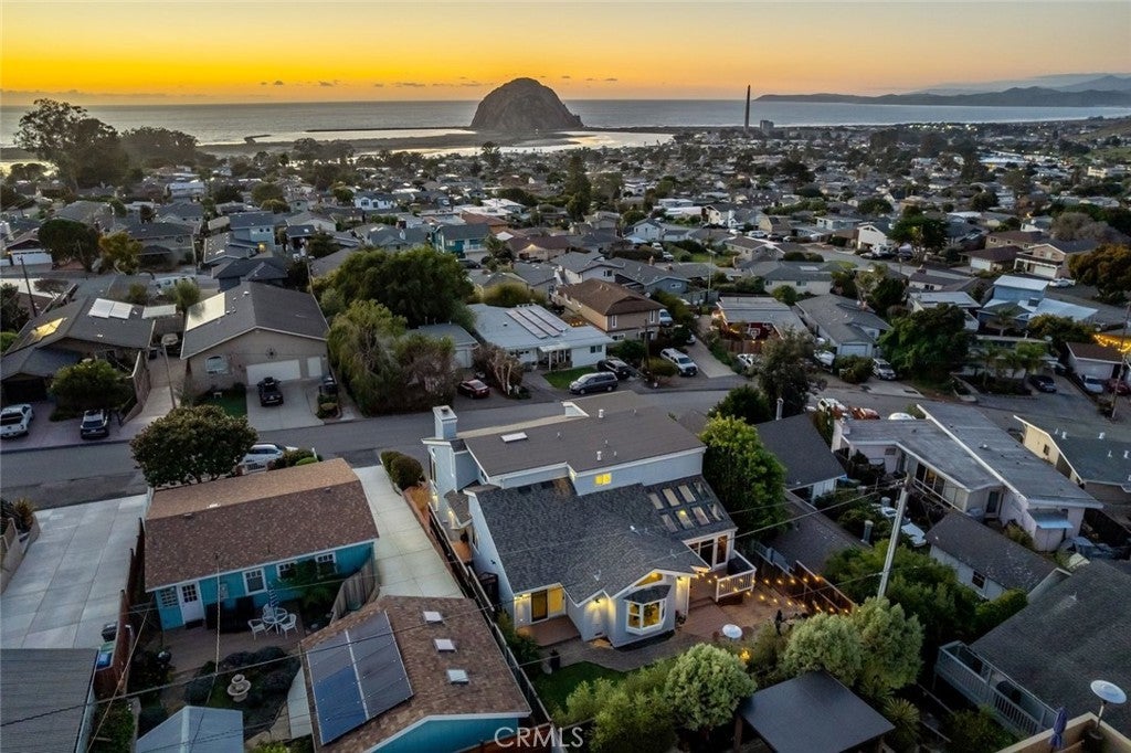 Located in the prestigious Morro Heights neighborhood of Morro Bay, this fully renovated coastal retreat captures iconic, unobstructed views of Morro Rock and the Pacific Ocean. Just minutes from scenic hiking trails, the Morro Bay Golf Course, and the Embarcadero, this move-in-ready home offers an exceptional blend of luxury and location. Thoughtfully reimagined, the 4-bedroom, 2.5-bath residence features new windows, sliders, doors, and updated mechanical systems throughout. The flexible floor plan includes a main-level primary suite and three spacious upstairs bedrooms. A finished three-car garage provides abundant storage, custom cabinetry, and an EV charger. Ocean views elevate everyday living in the chef’s kitchen, appointed with custom cabinetry, Viatera countertops, a KitchenAid five-burner induction cooktop, a Sub-Zero refrigerator, and premium appliances. Andersen sliding French wood doors open from the kitchen and dining area to a view deck, creating seamless indoor-outdoor flow. The open-concept living and dining area centers around a custom-tiled fireplace, while expansive glass windows invite natural light and frame the coastal backdrop. A cozy family room with a built-in desk provides an ideal work-from-home space. A sunroom or bonus area adds versatility with direct access to the landscaped backyard. The main-level primary suite features vaulted ceilings, exposed beams, and a sitting area. The spa-inspired bath offers dual Cambria quartz counters, a soaking tub, custom tile shower, and radiant heated floors. Upstairs, three generously sized bedrooms offer lovely views, wood flooring, and ceiling fans. One soundproofed room with custom built-ins is ideal as a music studio, media room, or yoga space. The upstairs bath also features radiant heated floors. Outdoor living shines with an ocean-view deck enhanced by LED lighting and dusk-to-dawn illumination. The backyard is designed for low-maintenance enjoyment with artificial turf, flagstone pavers, and inviting spaces to relax or entertain. Mediterranean Cannes hardwood flooring runs throughout, complemented by custom wood built-ins and refined coastal finishes. This turnkey residence blends modern comfort with timeless charm, offering front-row views of one of California’s most iconic coastal landmarks.