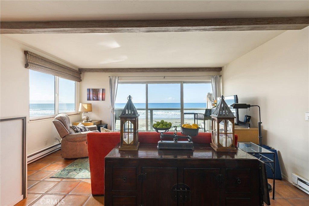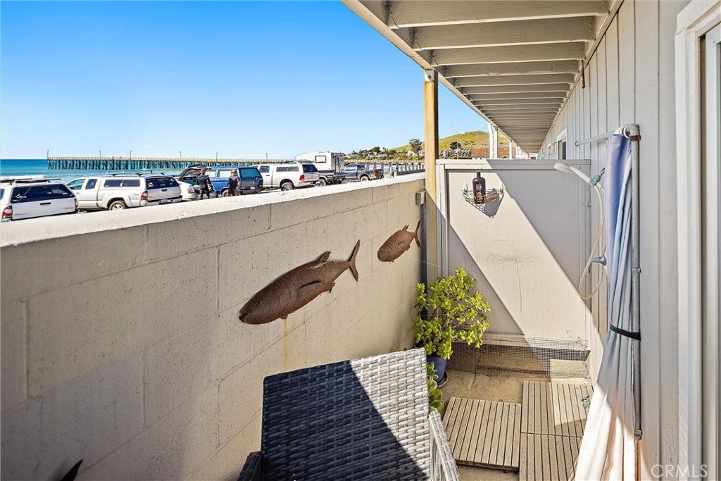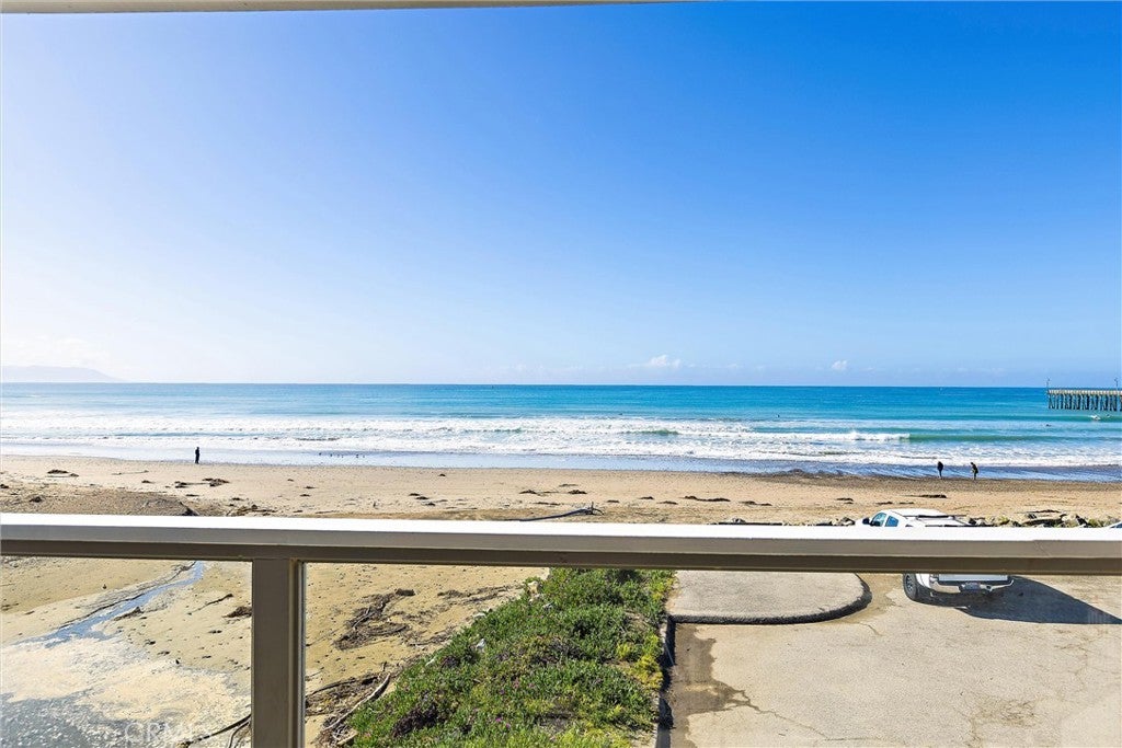 Breathtaking panoramic whitewater views of the entire coastline from Morro Rock to the Cayucos pier from this end unit condo. Watch the surfers and shore birds or take a walk in the sand searching for sea glass or other treasures. Two bedrooms, two bathrooms, heated outdoor shower, tile floors, ceiling fans, indoor laundry, wet bar with wine refrigerator add to beach living. Upstairs you will find an open floorplan with deck and an updated kitchen. There is a current County vacation rental license which adds to the value of this property. Located in downtown Cayucos and just steps away from shopping and restaurants. Furniture and furnishings are negotiable, and it is ready and waiting for you to enjoy for the upcoming summer.