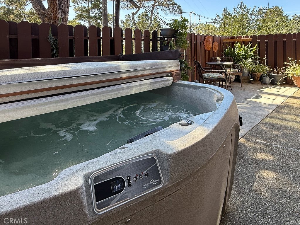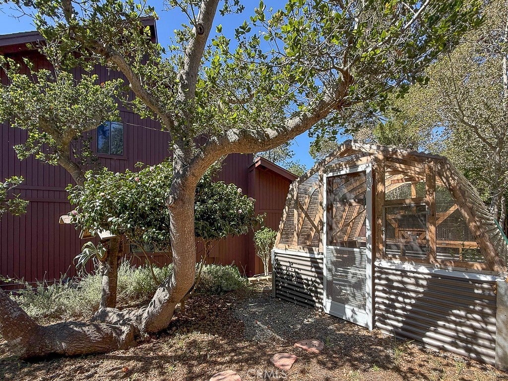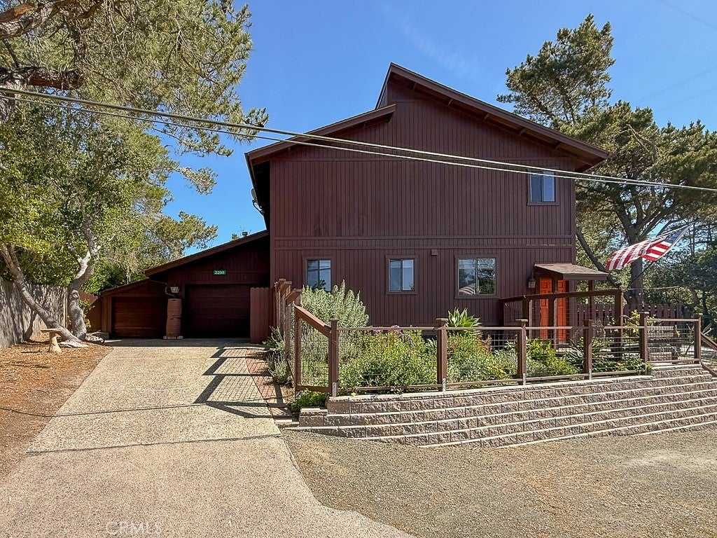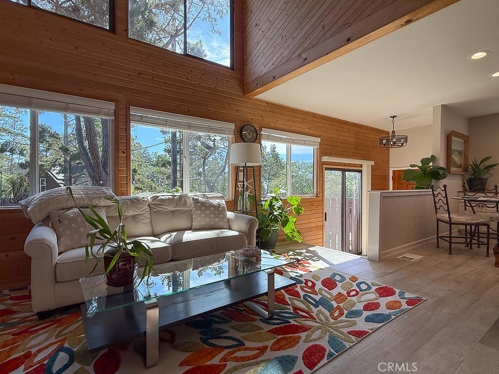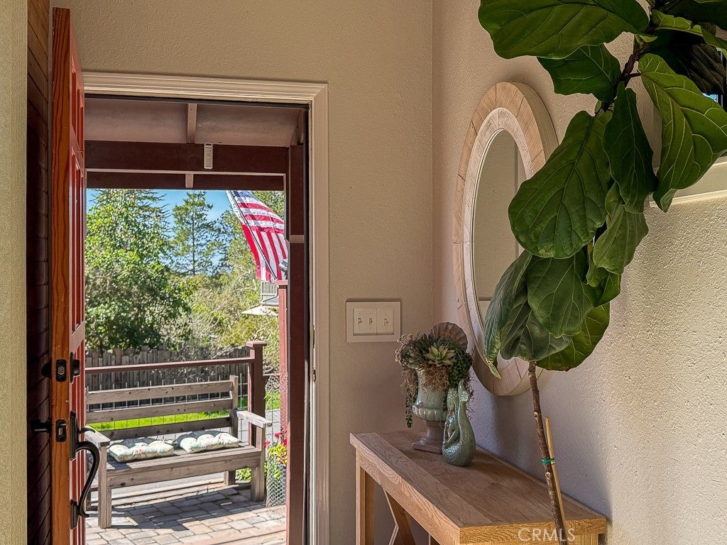 BEAUTIFULLY REMODELED and filled with natural light, this beautiful Cambria retreat blends warm wood architectural details, modern updates, and peaceful pine tree views just two blocks from Fiscalini Ranch Preserve. This light, bright, and airy 2-bedroom, 3-bath redwood home offers approximately 1,667 sq ft of thoughtfully updated living space on a large 6,708 sq ft corner lot. Just three steps up from the entry, the home opens into a beautiful light-filled space with warm wood walls, luxury vinyl plank throughout, a gas stove, and windows framing views of the surrounding pine trees. The open-concept living area flows into the dining space and beautifully updated kitchen featuring custom cabinetry, a convenient coffee bar, island with bar seating, and abundant windows that fill the home with natural light. Custom built-ins throughout add both charm and functionality. Upstairs are two spacious ensuite bedrooms, including a primary suite with peekaboo ocean view and beautiful sunsets. Outdoor features include a private fenced patio with spa for enjoying starry Cambria evenings, a greenhouse for gardening enthusiasts, RV parking, and a water catchment system. The property also includes a one-car garage with laundry and workbench plus a separate smaller storage garage. Located just a short distance from the Tipton Street trailhead of Fiscalini Ranch Preserve and miles of scenic oceanfront walking trails, this beautifully renovated home offers the perfect blend of comfort, nature, and the relaxed Cambria coastal lifestyle near the ocean.