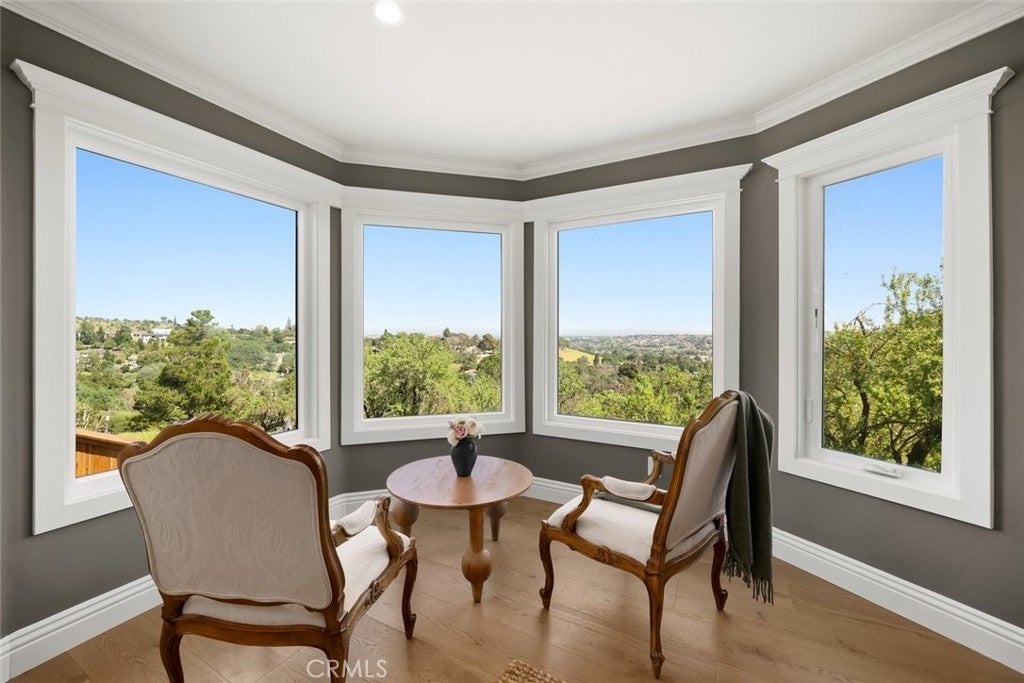 Capturing one of Paso Robles most breathtaking panoramas, this newly renovated residence is a seamless blend of timeless design and contemporary luxury. Thoughtfully reimagined inside and out, every detail reflects elevated craftsmanship and refined living. A beautifully finished paver and concrete driveway with ample parking is complemented by a detached two-car garage with private office complete with air conditioning and aesthetics matching the main home. The grounds are equally captivating. Lush, professionally designed landscaping with a full sprinkler system surrounds the home, while a serene terrace shaded by a majestic oak tree invites gathering and relaxation beside a charming outdoor fireplace. Inside, the main residence unfolds into an open-concept living space. The living room centers around a striking fireplace with an intricately detailed surround and custom built-ins. The dining area opens directly to an expansive deck, where sweeping vistas of Paso Robles create an unforgettable backdrop. The kitchen is both elegant and functional, featuring custom European-style cabinetry, quartzite countertops, a designer tile backsplash, and a generous island with seating. Premium appliances include a six-burner gas range and a fully integrated, paneled refrigerator for a seamless aesthetic. A sunlit breakfast nook offers tranquil views toward the terrace and eastern hills. Designed for both entertaining and retreat, a stylish game room with wet bar flows effortlessly to the backyard, where an in-ground pool and outdoor shower create a private resort experience. The primary suite is a sanctuary, complete with sitting area oriented toward the views, spa-inspired ensuite bath with soaking tub, walk-in shower, and private water closet. A custom walk-in closet with a discreet wall safe adds stylish functionality. Two additional spacious bedrooms enjoy direct backyard access and share a beautifully appointed full bath. A thoughtfully designed laundry center and a stylish powder room complete the home. Additional features include wide-plank hardwood flooring, marble tile accents, a built-in Sonos sound system, and dedicated hookup for a Samsung Frame TV. Major upgrades include new electrical, plumbing, HVAC, and roof—ensuring peace of mind for years to come. Bold in design yet effortlessly livable, this exceptional property offers a rare opportunity to own a meticulously curated home in one of Paso Robles most scenic settings.