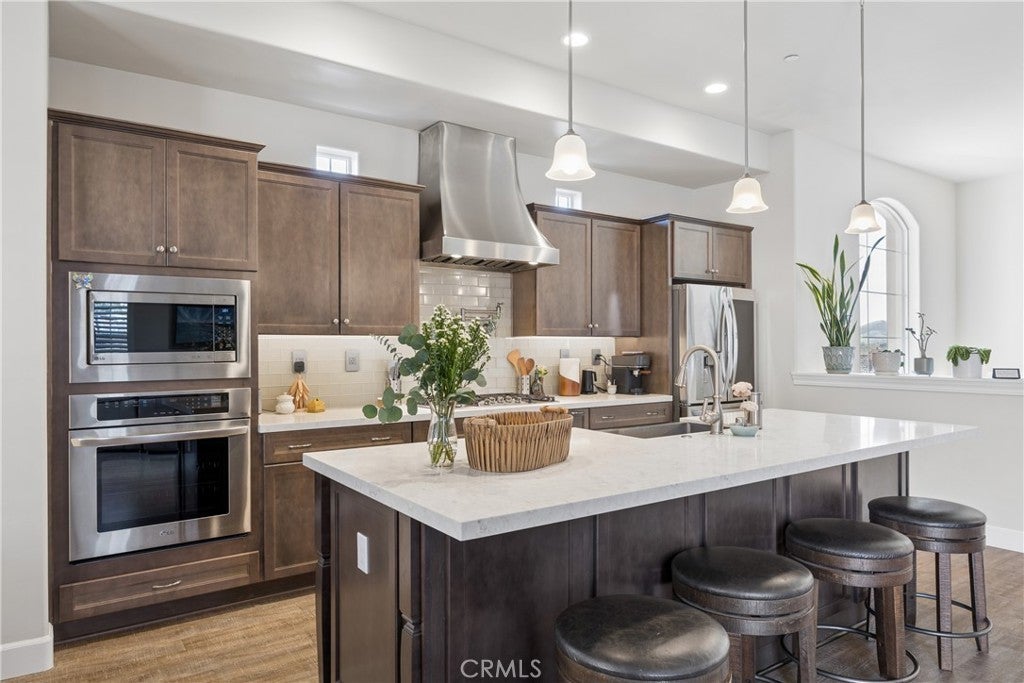 Inspired by the scenic hills and villages of Tuscany, the hillside community of Toscano is among San Luis Obispo’s premier luxury neighborhoods, known for its picturesque setting, scenic hiking paths, and distinctive hand-troweled stucco architecture. This beautifully appointed 3-bedroom, 3-bath home offers 1,826 sq ft of thoughtfully designed living space on a professionally landscaped 6,098 sq ft lot. A staircase entry leads to the main living level, where an open-concept floor plan creates a seamless flow for everyday living and entertaining. The living room with a corner fireplace opens to the dining area and a gourmet kitchen upgrade featuring LG appliances, a high-performance stainless steel hood, pot filler, and custom cabinet pull-out shelving. Patio access enhances the indoor-outdoor lifestyle. The primary suite provides a peaceful retreat with an ensuite bath and walk-in closet. A second bedroom, full bath, and laundry room complete the main level. The lower level offers a third bedroom and full bath—ideal for guests, office, or flex space—with direct access to the spacious garage. The multi-level backyard is designed for entertaining with beautifully landscaped seating areas, a pergola, and clear views of the surrounding hills. All just minutes from the vibrant downtown of San Luis Obispo, known for its renowned dining, shopping, and year-round community events.