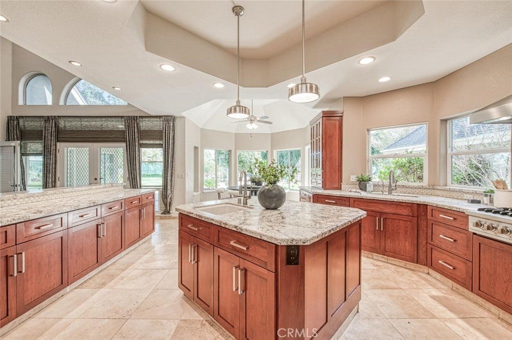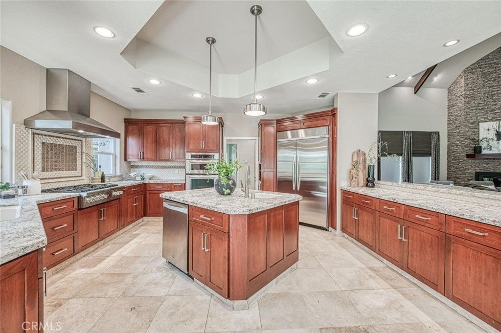 This exceptional custom, single story, estate home offers approximately 2 acres of privacy, luxury, and room to roam in the heart of Clovis. With 32 OWNED solar panels plus additional leased ground-mounted solar, this property blends sustainability with elevated living. Step inside to soaring ceilings and an abundance of windows that flood the home with natural light. Gorgeous hardwood floors and extensive updates enhance the thoughtfully designed layout. The gourmet kitchen features custom cabinetry, granite countertops, stainless steel appliances, a Viking Pro 6-burner gas cooktop, built-in refrigerator, eating bar, and breakfast nook. The flexible floor plan includes 4 spacious bedrooms and 3 bathrooms, including three guest bedrooms with unique features such as built-in desks, window seats, spacious closets, and a connected bathroom. The grand great room showcases an eye-catching floor-to-ceiling stone fireplace and built-in entertainment center, along with a formal dining room and den/second living area with exterior access. The primary suite is a luxurious retreat with its own fireplace and spa-inspired bath featuring a free standing tub, stone flooring and upscale finishes. Outdoors, enjoy park-like, thoughtfully designed landscaping framed by mature trees and lush greenery. This backyard is designed for year-round enjoyment with a fenced pool and spa with waterfall, expansive covered patios, covered cabana ideal for gatherings, and a lighted tennis court. There is ample space for RV and boat parking, plus an impeccable 3-car garage with epoxy floors and a workshop area. Major upgrades include a new roof, recently re-surfaced pool, two new water heaters, two new AC units, new thermostats, updated septic system, new well pump, and new ballast tank. This remarkable estate offers privacy, space, natural beauty, and timeless luxury. Schedule your private showing today. Close to Clovis Community Medical Center and Freeway168. Clovis Unified School District - Buchanan High School. *owned solar plus a leased system *tennis court *2 new HVAC units *newer roof *single story *resurfaced pool *3 car garage *extra room off of garage for a workshop/office