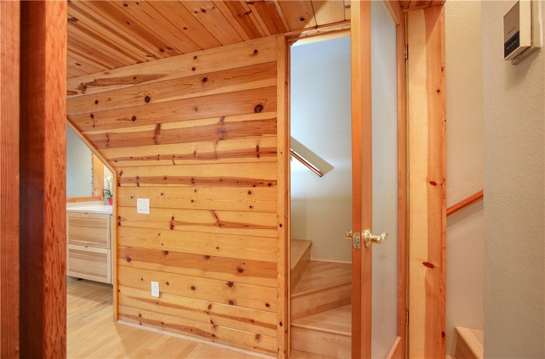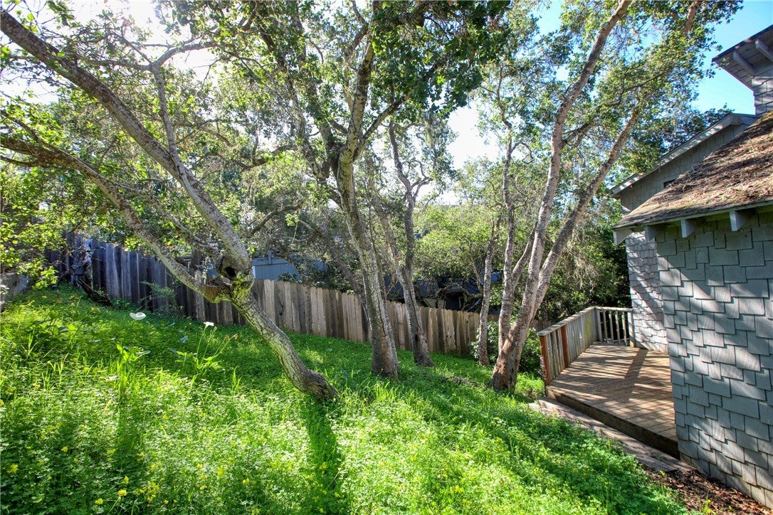 A little bit of Big Sur in Cambria on California's jewel of the Central Coast. This finished move-in ready 2 bed/2 bath open plan warm architectural home has lots of natural light and lovely tree top views The fireplace in the living room makes for cozy evenings. There are tall vaulted modern wood ceiling throughout for a clean modern open feel. The 2 spacious bedrooms are separate and quiet, one a few steps up off the living room has it’s own private deck. The upstairs bedroom has an ensuite bath with walk in shower. The bathrooms have been beautifully updated with tasteful soft tone designer tiles. The bottom floor bath has a separate spa tub in addition to the shower. The Kitchen has solid white stone countertops, and newer fixtures and an adjacent dining area with French doors that open to a walk around deck. The living room has custom bay windows and wood shutters. There is a small sunlit office area off the kitchen. The home is set back from the street and away from neighbors, providing privacy and panoramic views to the west with plenty of sun and glorious sunsets. Decks and patio facilitate indoor/outdoor living. The Fiscalini Ranch Preserve is a short walk, as are the beach areas of the Marine Terrace. Come breath in the Monterey Pine forest air from this special property. Enjoy empty beaches, Big Sur 20 minutes north, wine country to east, Morro Bay just south, so much to do. This home has a SHORT TERM VACATION RENTAL LICENSE!