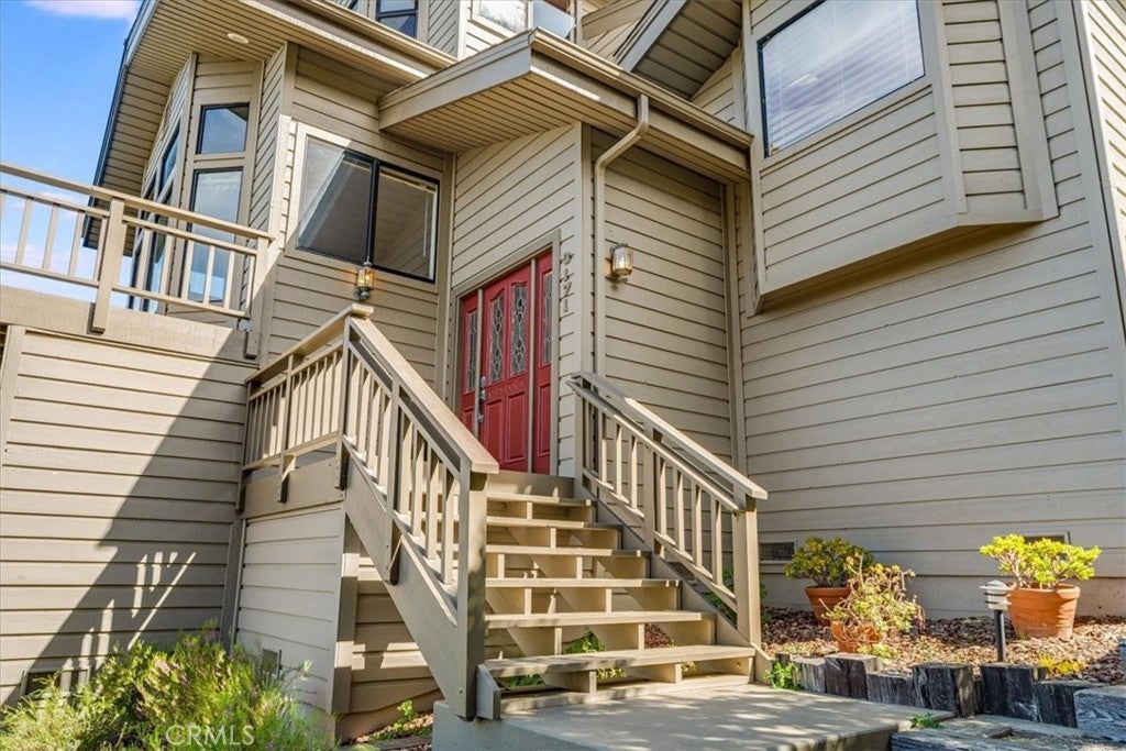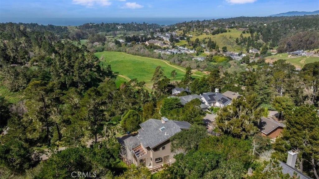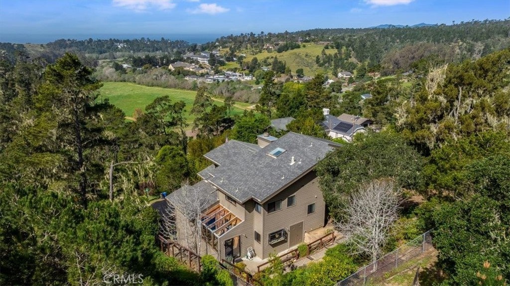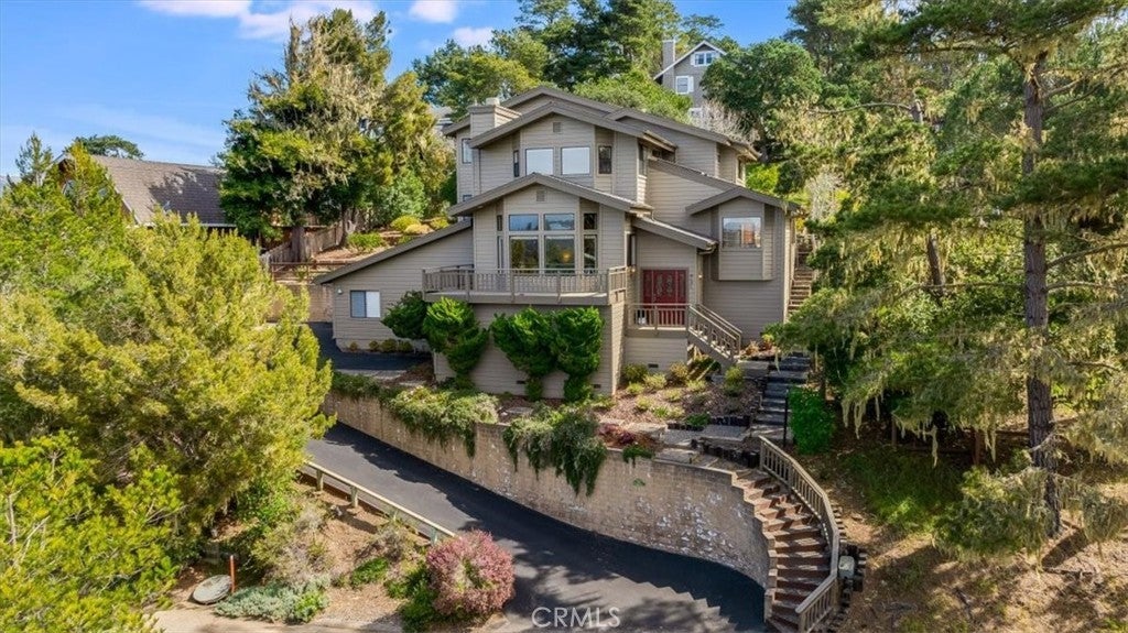 Set in a unique enclave of 18 homes, 3171 Rogers offers panoramic ocean views over Santa Rosa Creek, from virtually all of the 2,700+ sq ft, 3 bed/3 bath home on almost 1/4 acre site! A formal entry greets you, leading to the 5’ wide shallow step stairway up to the main floor. Here you will find a 20’ X 22’ X 10’ high ceilings living room with massive windows to take in the Ocean Views right down the Santa Rosa Creek Arroyo, and a deck to enjoy the sunsets. Just steps away from the Fiscalini Ranch trails. Also on the main level is a formal dining room, kitchen, laundry/powder room, and a sunroom, all set in an open-ish plan. The kitchen has a breakfast nook, triple sink, double ovens, an island and access to a BBQ patio. The formal dining has built-ins, a vaulted ceiling and views. The sunroom is an unusual plus, providing a place for pets, solar heat gain, and a sunny sitting area. The 1st bedroom is found half a flight up and has a 3/4 bath. Another half flight takes you to the large Main Suite. Its ensuite bath has a jetted tub, separate shower, 13’ of counter & double sinks, and a walk-in closet. Half a flight again is bedroom 3, again with views and volume. All aspects of this home are spacious and oversized and there are ample storage closets throughout! Well maintained home inside and out, private paved driveway and parking, landscaping, etc, waiting for you.