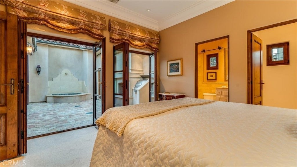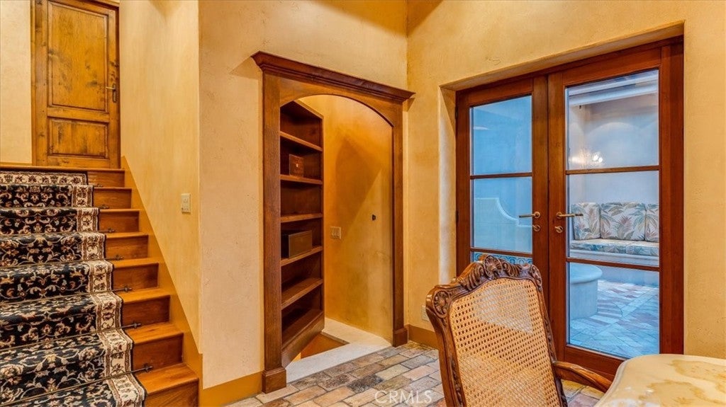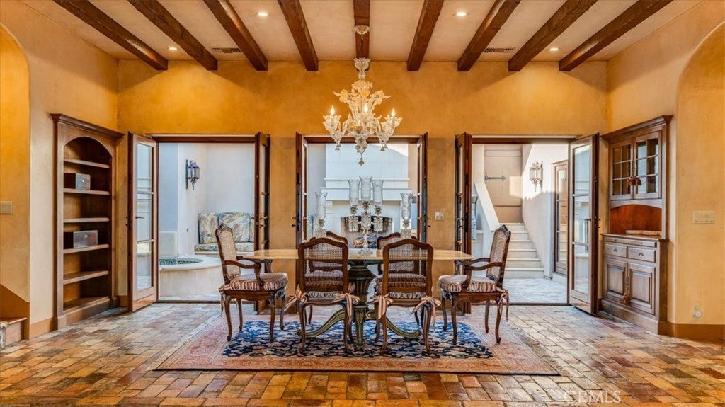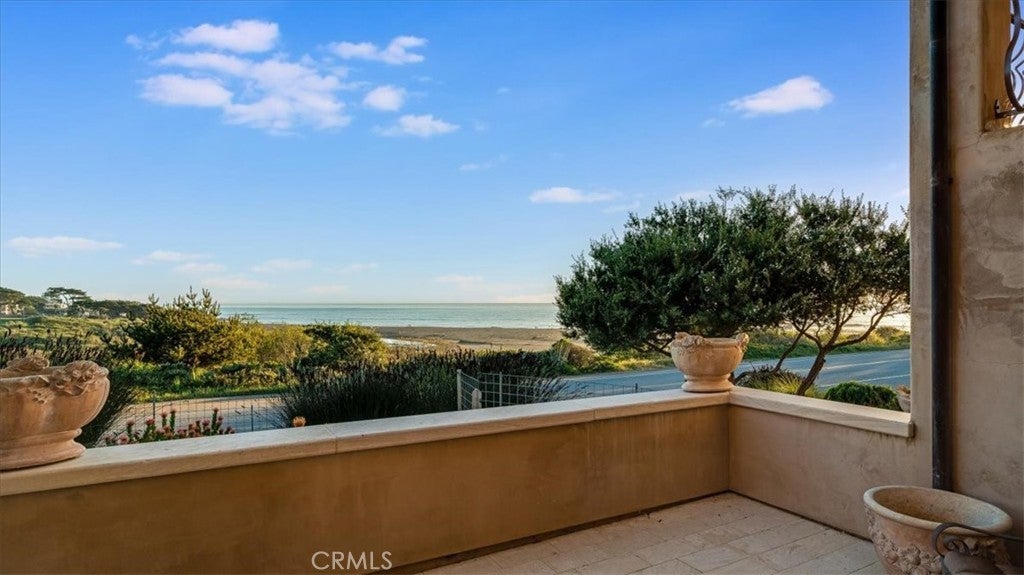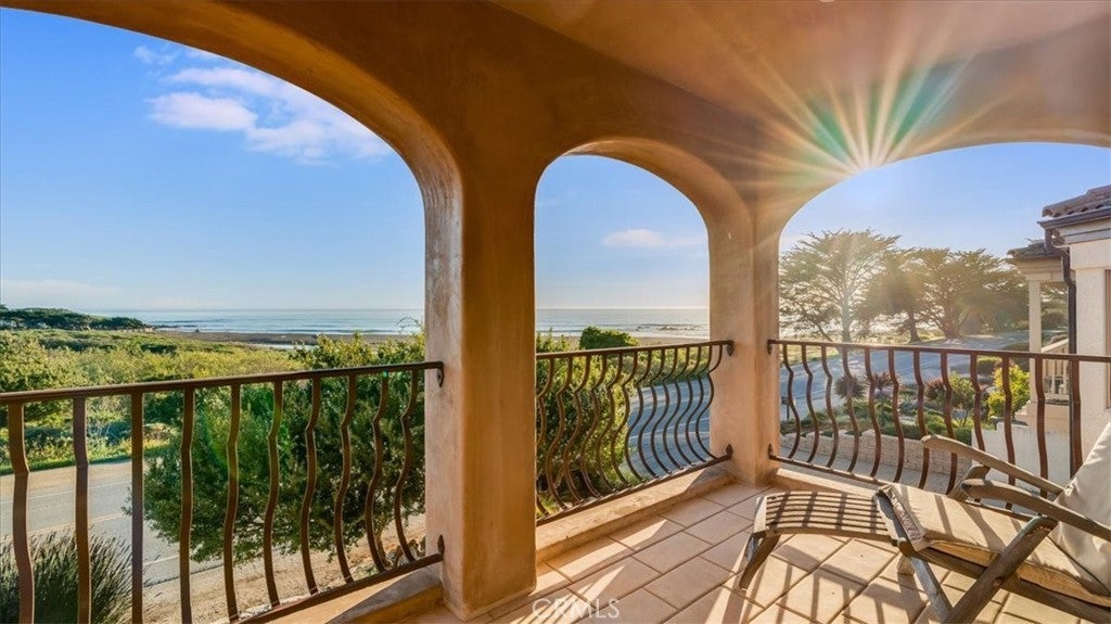 This elegant Italian Villa, ”Bellangelo,” overlooking Moonstone Beach in Cambria is a jewel in craftsmanship and location. This spectacular villa was designed for ocean views and is situated on a south facing, street to street parcel optimized for incredible weather. Designed by famed architect John O’Neil of Laguna Beach and built by Tony Peters, many materials were sourced from Italy and Tunisia. Generously sized rooms adorned with beams, hand scraped wood floors, and tall ceilings look out toward the sea or into an open-air inner courtyard. Glass doors from every room access the stone patios surrounding the home extending, the living areas and views. The villa has three bedrooms, large office/4th bedroom, 3.5 bathrooms, open living/dining area, chef’s kitchen with walk-in pantry, walk-in wine cellar, oversized 2 car garage, private open air courtyard with fireplace, in-ground spa and built-in grill, plus many patios with mature landscaping. The large boulders interspersed with mature plants evoke an Italian landscape. The primary suite enjoys dramatic white water views from both the room and the patio. It has a cast stone fireplace, extensive closets and a sumptuous ocean view, marble bathroom. Exquisite details and character fill this home such as Murano glass chandeliers and wall sconces, marble floors and counters from Fire Mountain in Tunisia, windows and doors are Albertini (made and imported from Italy,) antique terra cotta floors sourced from old Italian homes, hand quarried limestone from Loveless Texas, and hand scraped wood floors. The location is close to the West Village of Cambria with restaurants and shops, but it is also just across from the Moonstone Boardwalk. The garage and entrance are located on Stafford Street, leaving the front ocean view patios overlooking Moonstone Beach Dr.