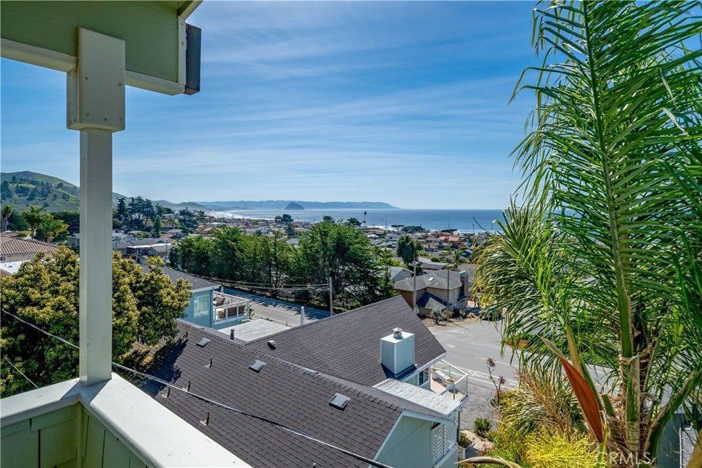 Perched in a premier Cayucos location just three blocks from the beach, 1000 Saint Mary Ave offers coastal living with tropical charm. A gated entry welcomes you into a lush setting of mature palms and banana trees, while ocean views greet you at the door. Inside, hardwood floors, a fireplace, and whole-home heating, A/C, and surround sound create comfort year-round. The main living level features a spacious layout ideal for large families, with a stunning ocean-view deck complete with gas hookups, perfect for outdoor cooking and entertaining. The primary suite is conveniently located on the main level, offering its own balcony, walk-in closet and a jacuzzi tub in the bathroom. Downstairs are two additional bedrooms, a full bathroom and a finished garage with built-ins and sink. The lower level includes a wine cellar and an unfinished bedroom and bath with plumbing in place, offering potential for future completion. Enjoy ocean sounds, cross breezes, and views from nearly every room. The fenced backyard, irrigation system, and walkable access to town and pier complete this exceptional coastal retreat.
