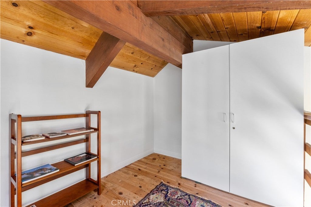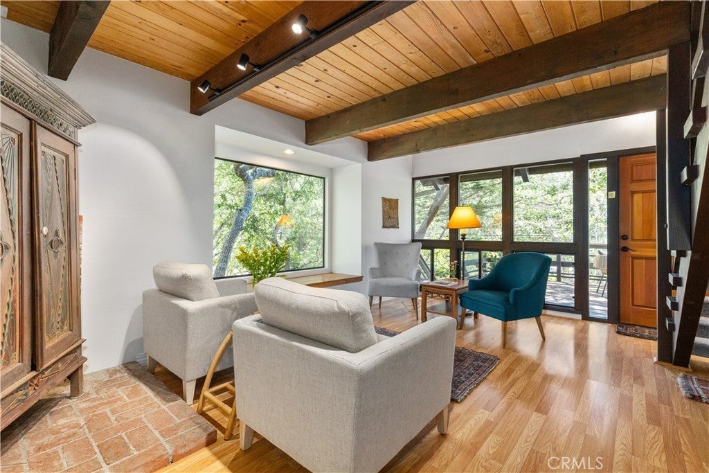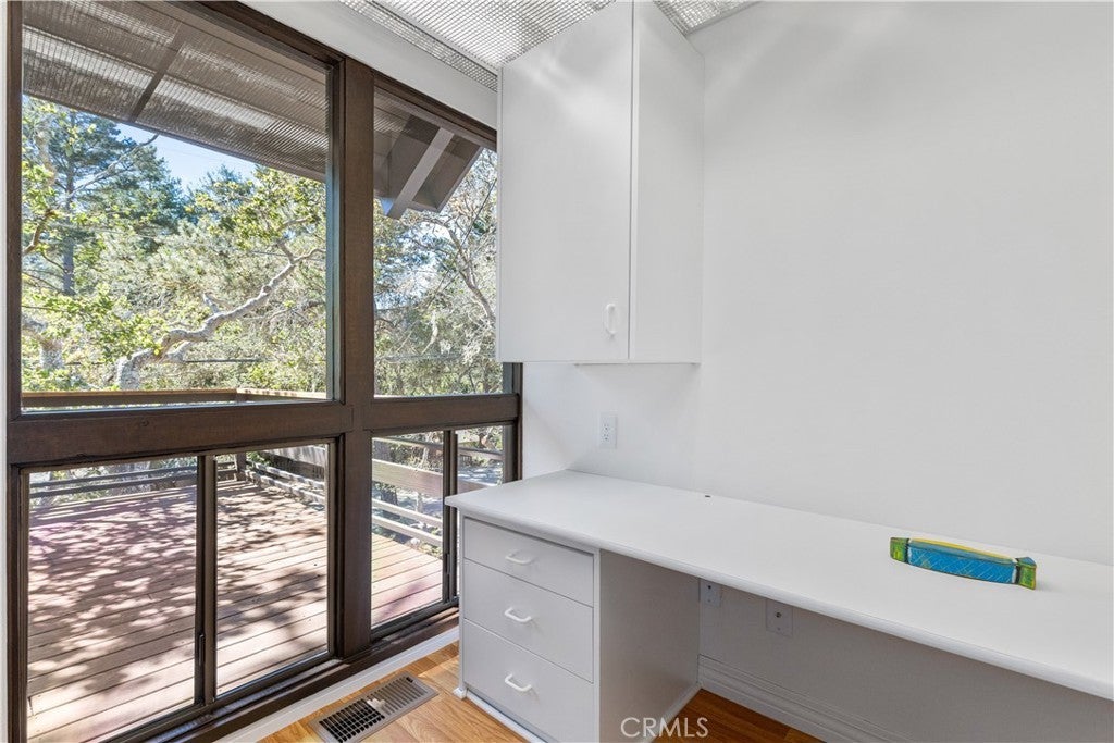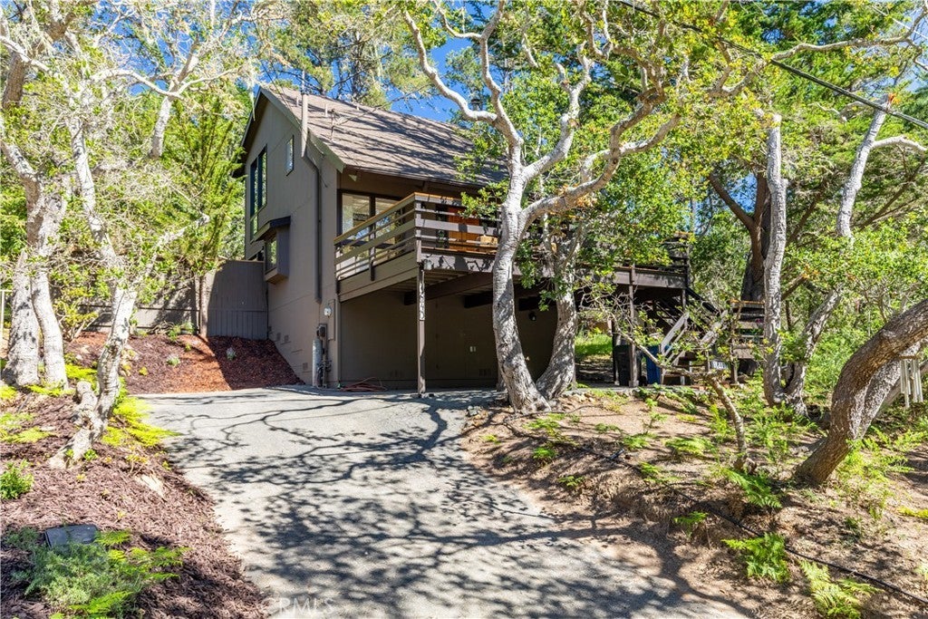 Escape to Your Artistic Coastal Treehouse! Tucked among the trees in the sought-after Cambria Pines by the Sea, this custom-built home offers a truly special coastal retreat—perfect as a serene second home or full-time escape. Filled with natural light, the home showcases beautiful wood and glass throughout, blending seamlessly with its peaceful surroundings. This inviting residence features 2 bedrooms, 2 bathrooms, plus a dedicated office and loft spaces, offering flexibility for guests, work, or relaxation. Soaring open-beam wood ceilings, and a charming window seat create a warm, airy atmosphere, with tranquil views of the neighboring open lot. The remodeled kitchen comes complete with appliances, while recent updates—including low-VOC interior paint, new carpet, with the laminate wood flooring—add comfort and style. The upstairs primary suite includes a walk-in closet and adjacent bath, while the second bedroom features its own bonus sleeping loft. Built-in cabinetry enhances the loft area, and indoor laundry with washer and dryer is included for convenience. Step outside to enjoy a private back deck and patio, along with a fenced yard filled with native landscaping. The spacious front deck is perfect for entertaining or simply unwinding among the trees and local wildlife. Additional highlights include a newer roof (2015), Tesla charger near the carport, and extra driveway parking for guests. Situated on a paved street in sunny Lodge Hill, the home also features a landscaped front yard and thoughtfully maintained grounds. Ideally located near the ocean, this home offers easy access to Moonstone Beach, Hearst Castle, local wineries, and all that scenic San Luis Obispo County has to offer. Your coastal sanctuary awaits—come experience the charm of Cambria living.