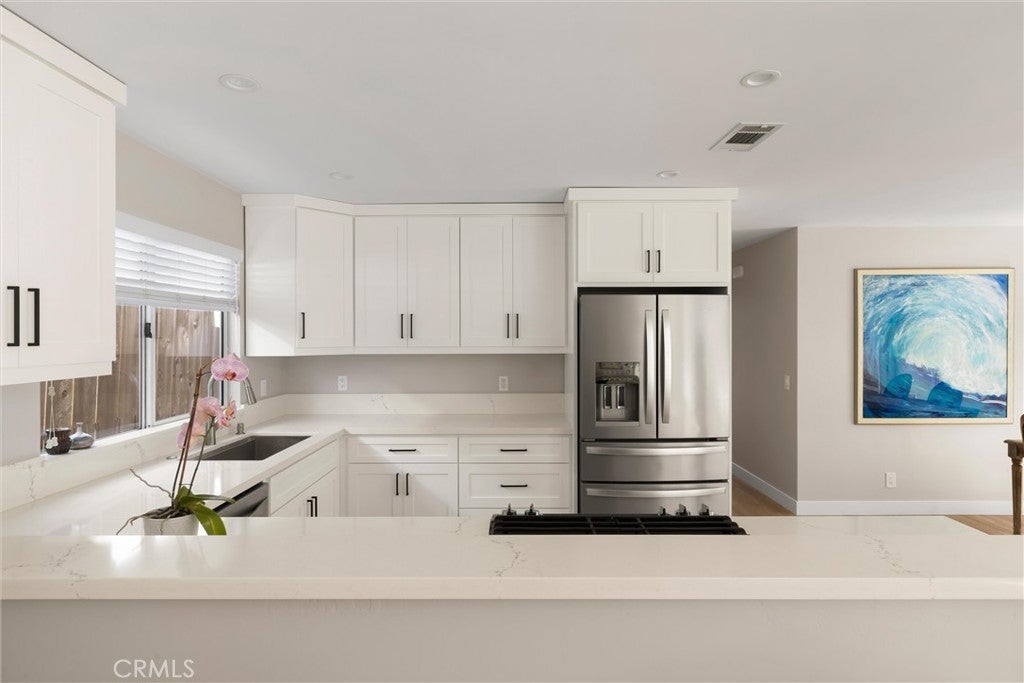 Charming and thoughtfully updated 2-bedroom, 1-bath home offering approximately 1,128± sq ft of comfortable living on a 4,000± sq ft lot. Remodeled about five years ago, this home has been beautifully modernized with a clean, cohesive aesthetic and quality finishes throughout. The stylish kitchen features stainless steel appliances, custom cabinetry, and quartz countertops, while the fully renovated bathroom offers dual sinks set in a custom-built vanity, matching updated finishes, and a larger, deeper tub with a tiled surround. The open-concept living, kitchen, and dining areas are filled with natural light and anchored by a tastefully updated fireplace, creating a warm and inviting space to relax or entertain. The primary bedroom also enjoys great natural light and features a large sliding glass door, adding to the home’s bright and airy feel. The remodel goes beyond the surface, with thoughtful system upgrades including a tankless water heater and updated furnace, both added approximately three years ago. The home also showcases a more refined, modern finish with updated flooring throughout, smooth wall textures, recessed lighting, and updated interior doors, trim, and detailing that elevate the overall look and feel. Outside, the stucco exterior, fully fenced yard, and welcoming front courtyard provide privacy and charm, while the oversized finished single-car garage, with laundry and built-in cabinetry, offers excellent storage and flexibility. Located in the scenic coastal community of Los Osos, this home is just moments from the heart of Baywood, Sweet Springs Preserve, and a vibrant local scene known for its restaurants, coffee spots, art, and live music. Enjoy the popular Monday farmers market, nearby concerts at Sea Pines Golf Resort, and easy access to Morro Bay, San Luis Obispo, and the breathtaking trails and coastline of Montana de Oro State Park. A move-in ready home that blends quality upgrades with the laid-back Central Coast lifestyle.