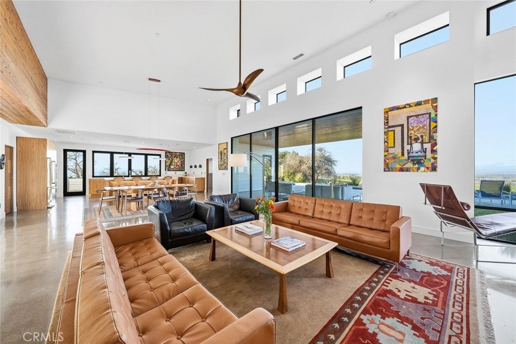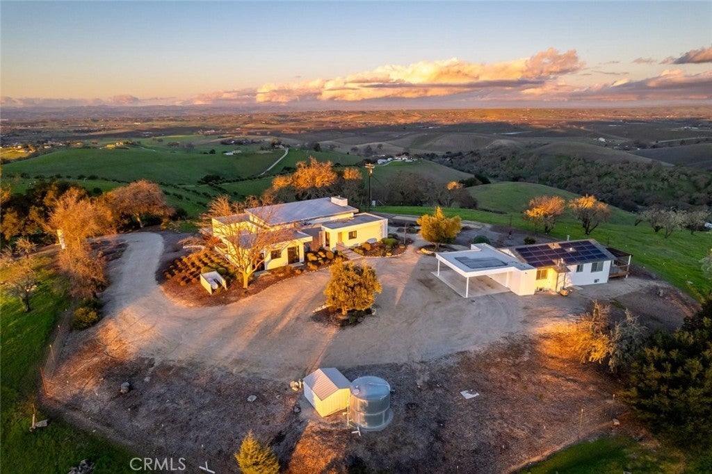 Award-winning architecture meets the soul of California’s Central Coast in this exceptional estate by Andrew Goodwin Designs, recipient of the 2020 AIA California Central Coast Award for excellence in design and execution. Privately situated at the end of a scenic country lane, the El Pomar Residence is a rare convergence of architectural distinction, natural beauty, and refined livability, balancing serenity with sophistication and lifestyle with income potential. The 2,727 square foot main residence offers 4 bedrooms and 3 bathrooms, defined by open, light-filled spaces and framed views of the rolling Paso Robles hills. Thoughtful craftsmanship is evident throughout with custom millwork, radiant heated floors, and curated finishes. A separate 1,092 square foot guest house features two bedrooms and one bathroom and operates as a fully permitted, high-performing short-term rental, complete with washer/dryer, dishwasher, and contemporary gas fireplace. Designed for beauty and efficiency, the solar-powered estate delivers near net-neutral electric costs and is supported by a single well and electrical system for both residences. The main home includes 4-zone HVAC, tankless water heater, RO water system, Dekton countertops, Bosch induction range, Bosch steam and convection microwave oven, Bosch warmer drawer, Electrolux refrigerator, a 650-bottle wine cellar, and an integrated indoor-outdoor sound system. Outdoors, a 60-foot lap pool anchors expansive decking and natural landscapes for seamless indoor-outdoor living. The property pioneers a unique agricultural legacy as the first commercial U.S. planting of the rare Italian varietal Nero di Troia, cultivated in partnership with Giornata, a premium Italian winery. Ownership includes annual complimentary wine allocation and seven additional acres of vineyard-ready land with prized calcareous soils. Key highlights include award-winning architecture, end-of-road privacy with panoramic vineyard and valley views, two residences on a single metered solar system, multi-generational living potential, full insurance including liability and earthquake coverage, proven rental income, premium vineyard acreage, proximity to regional and private airports, a 60-foot lap pool, radiant heated floors, and a turnkey lifestyle with furnishings available. Just 15 minutes from downtown Paso Robles and 30 minutes from San Luis Obispo Airport, this is a rare offering where design, agriculture, income, and lifestyle converge.