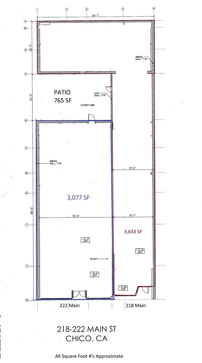 Downtown Chico space available that offers original brick walls, 13' ceilings, store fronts and a patio space all on a high traffic block. Tour this historic building and design a space that utilizes the character and light this building provides. Numerous uses available including restaurant, tasting room, retail or mixed-use including office. Building is currently in cold shell condition (no HVAC, no electrical, no plumbing, etc), offering a variety of options. 222 Main Street can be demised to 3,077 sqft and 218 Main Street can be demised to 3,633 sqft.