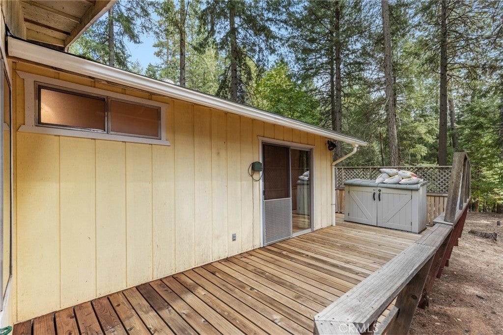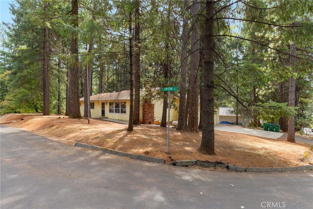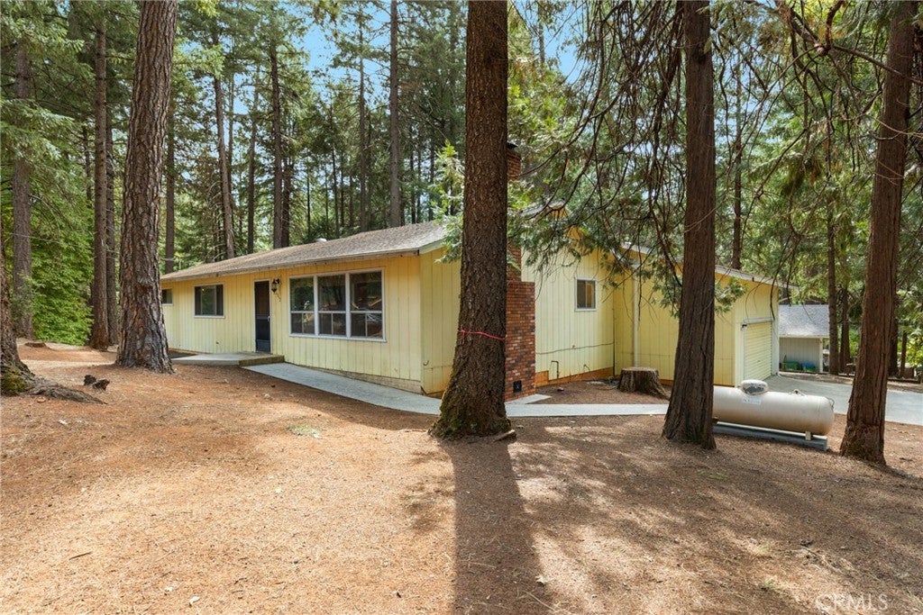 This adorable home in the heart of Magalia is surrounded by beautiful pine trees on a clean, spacious lot. Enjoy relaxing on the large deck, embraced by nature's beauty. Located in the desirable Paradise Pines community, the home offers access to fantastic amenities, including a pool, spa, BBQ area, playground, picnic area, tennis courts, clubhouse, and billiards—truly something for everyone. Inside, the charm continues with high wood-beamed ceilings in the living room, a cozy brick-surround pellet stove, and large windows that fill the space in natural light. The open living area flows into a large dining space, with a spacious kitchen nearby featuring ample counter and cabinet space, stainless steel appliances, a gas stove, and an electric cooktop. The primary bedroom offers a private escape with a slider that opens to the deck and fresh air, complete with an en-suite bathroom. A guest bedroom and bathroom provide additional comfort, and the large garage offers plenty of storage, with a long driveway allowing for more parking. Perfect for those who love the outdoors, the community is also close to lakes, fishing, and hiking, making it a wonderful place to call home.