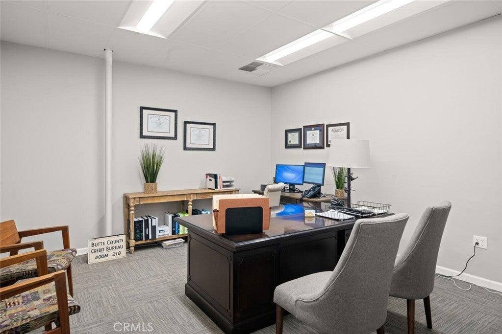 Recently updated building on the corner of 3rd Street and Flume. Suite facing Flume St is a professional office space which has been updated throughout and features a reception area, 8 private offices, conference room, copy area and storage room. The suite facing E 3rd St is currently occupied by Hydration Happens. The building is complete with two restrooms and a small shared kitchenette. Property is located across the street from a public parking lot. Great for an investor or a potential owner user.