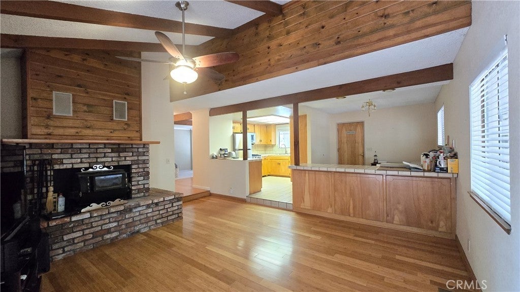 • Interior FeaturesBeamed Ceilings, Built-in Features, Ceiling Fan(s), Cathedral Ceiling(s), Separate/Formal Dining Room, High Ceilings, Tile Counters, All Bedrooms Down, Main Level Primary