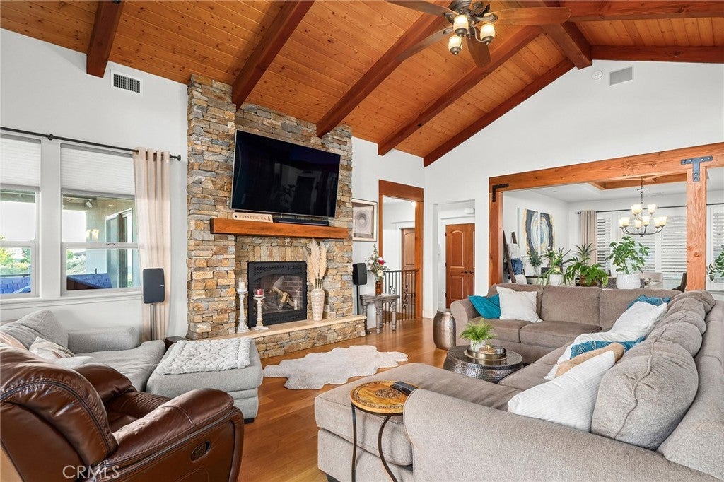 A Rare Custom Estate in One of Paradise's Finest Neighborhoods! This stunning custom-built home is a rare opportunity to own one of Paradise’s premier properties—set in a highly desirable neighborhood and nestled on approximately 2.85 acres that includes a build-ready adjacent lot. With impeccable craftsmanship, thoughtful design, and high-end amenities throughout, this home offers a lifestyle and value that simply cannot be replicated at today’s construction costs. Step inside the expansive main level (approx. 3,200 sqft), where no steps are needed to access the primary living areas and bedrooms. Rich with warmth and character, the home features solid oak wide-plank flooring, a real stone gas fireplace, custom beam work, cherry cabinetry, and intricate wood ceiling detail in the formal dining room. The gourmet kitchen is equipped with Thermador and KitchenAid appliances, granite counters, and Kohler fixtures—perfectly suited for entertaining or everyday luxury. Upstairs you’ll find a versatile loft space with a half bath, while the downstairs level offers an ideal guest suite or media/game room complete with a private entrance, full bath, and a cedar wet/dry sauna. There’s also a second single-car garage below for additional storage or workspace. Step outside to your private oasis—professionally landscaped with low-maintenance gardens, citrus and fruit trees, and raised beds. The showstopper? A Natural Design Swimming Holes saltwater pool, built in 2021, offering a peaceful retreat or a stunning setting for entertaining. Enjoy sunset views from the covered beam-deck and patio while overlooking the valley and coastal range. Built with longevity and efficiency in mind, the home boasts a 50-year presidential composition roof, owned 9.15kW solar system, zoned energy-efficient HVAC, Culligan water system, recirculating hot water, RV hookup with dump station, and fenced rear yard. Paradise is more than just a location—it’s a thriving mountain community that continues to grow in beauty, resilience, and vibrancy. Homes of this caliber, in this location, and at this price are simply not replicable in today’s market. Don’t miss the chance to make this extraordinary property your forever home.