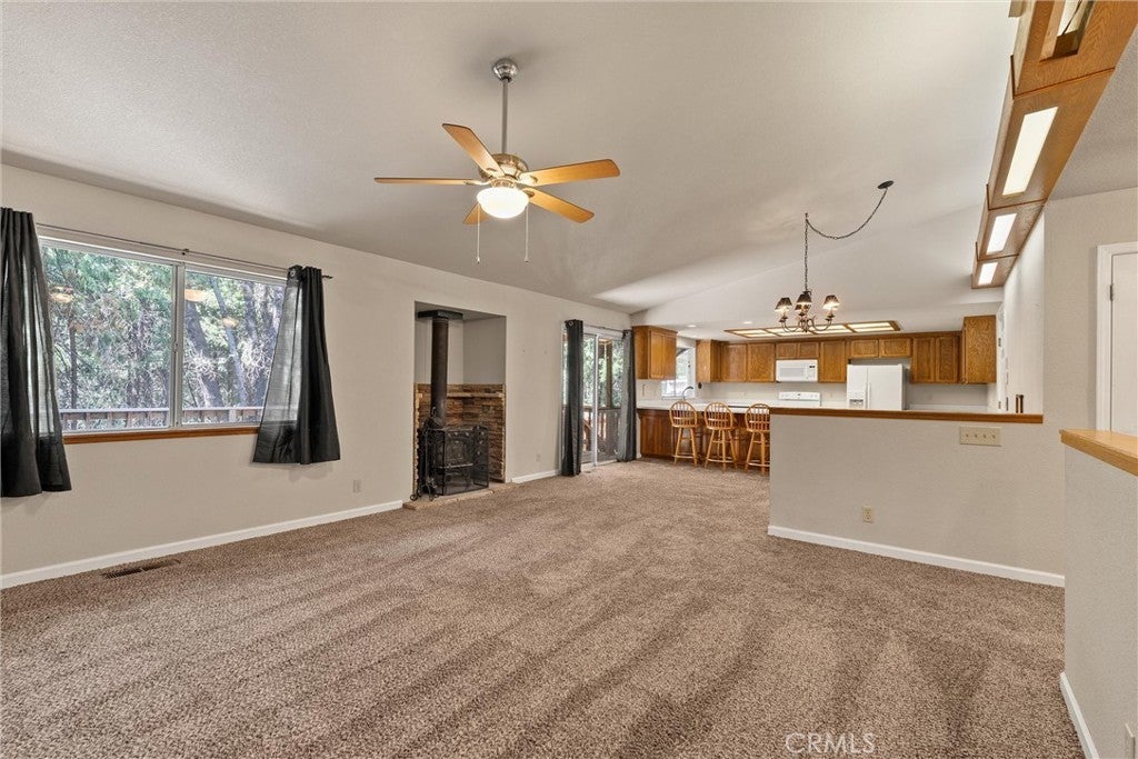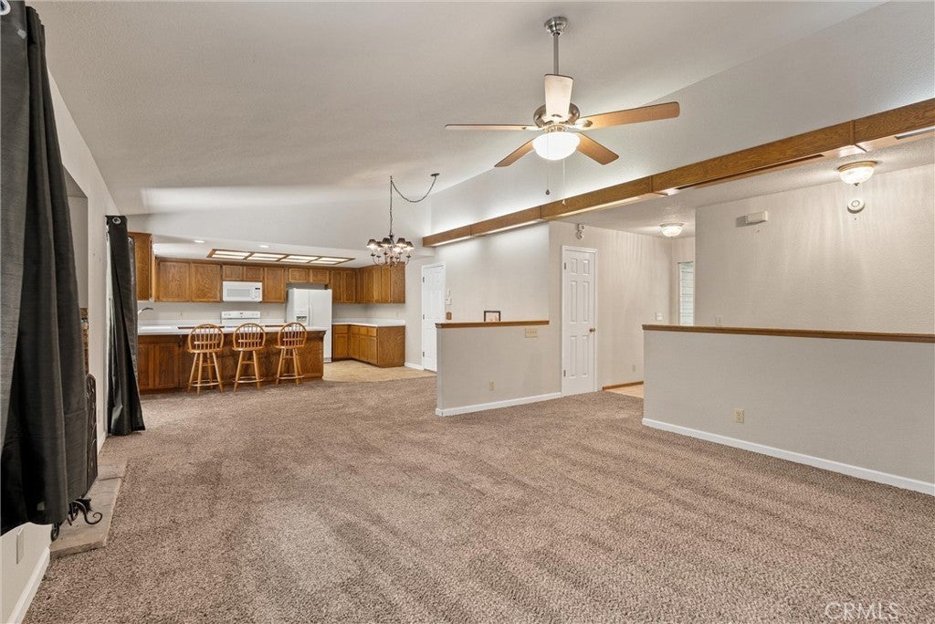 • Interior FeaturesCeiling Fan(s), Separate/Formal Dining Room, Eat-in Kitchen, Recessed Lighting, All Bedrooms Down, Bedroom on Main Level, Main Level Primary, Walk-In Closet(s), Cathedral Ceiling(s), Laminate Counters, Solid Surface Counters, Tile Counters