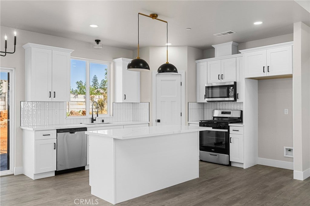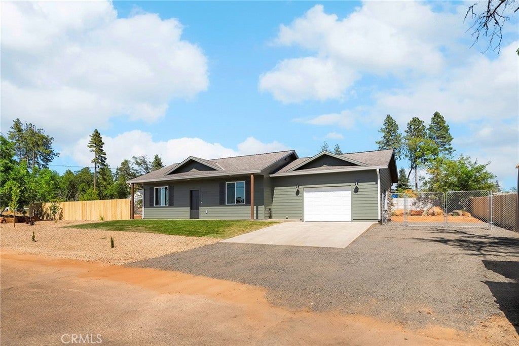 SELLER IS OFFERING A $10,000 CREDIT toward closing costs or a rate buy-down PLUS no CA Fair Plan needed for this new build! Welcome to 6388 Oak — where charm, function, and flexibility meet. Situated on a corner lot, this beautiful 2-bedroom, 2-bathroom home faces Oak and offers thoughtful design throughout. Built by American Dream Construction, a respected local builder known for quality craftsmanship and attention to detail, this home is also fully wildfire-prepared. American Dream Construction is one of the few builders in town constructing homes that exceed current wildfire safety standards—with five feet of defensible space using non-combustible materials, Class A fire-rated roofing, non-combustible gutter systems and downspouts, Vulcan ember-resistant vents, and fire-resistant exterior materials for added protection and peace of mind. Inside, you’ll find soaring 9’ ceilings with a 10' tray in the living room, abundant natural light, and an open-concept layout that creates a warm, inviting feel. The kitchen features a large island, gas range, corner pantry, and deep sink overlooking the backyard. The dining area sits just off the kitchen—perfect for entertaining. Both bedrooms are conveniently located on the left side of the home. The spacious primary suite enjoys sunset views and an en-suite bathroom with a sleek quartz slab walk-in shower. The second full bath includes a tiled tub/shower combo, and there’s an interior laundry room for added convenience. Outside, the oversized single car garage and two separate gated parking areas—one off Oak and one off Wagstaff—offer ample space for your RV, boat, or trailer. The side and backyard are fully fenced, while the front yard features an irrigated lawn, rock border, shrubs, and mature pre-fire trees adding beauty and shade. Located between Clark and Skyway, it’s easy to get anywhere in Paradise within minutes. The SaveMart center is just up the road, and quick access to Skyway makes trips to Magalia, Chico, or Oroville a breeze. To top it off, a 2.5kW OWNED solar system will be installed prior to close—bringing energy savings and peace of mind from day one. And for even more confidence in your investment, the builder is including a 1-year fit & finish warranty—extended by an additional 6 months for the buyer.