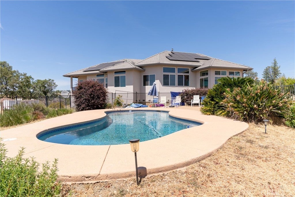 Stunning Custom View Estate on 20 Acres with Pool, Solar & More! Welcome to your dream retreat just outside the charming town of Paradise! This nearly new, custom-built 2023 estate is a rare gem offering an incredible blend of elegance, space, and self-sufficiency — all set on a private, usable 20-acre parcel with panoramic views that stretch across the valley to the distant coastal mountains. With 4 spacious bedrooms, a dedicated home office, and 3 bathrooms, this 3,001 sq ft home was thoughtfully designed to combine classic style with modern touches. Step inside and you’ll be greeted by a light-filled great room with soaring ceilings, a cozy fireplace, and a seamless flow into the stunning kitchen and dining areas. The kitchen is ideal for both everyday living and entertaining, boasting ample counter space, high-end finishes, and views that will inspire every meal. Enjoy sunsets from the inviting covered front porch or bask in natural light from the exceptional sunroom, perfectly positioned to soak in the sweeping views. Just outside, you'll discover your own private oasis — a gorgeous in-ground pool with fencing around the pool and deck area for added safety and peace of mind. This property offers features that go well beyond the ordinary, including: • Owned solar system for energy efficiency • 18KW backup generator for uninterrupted power • Private well and well-house, providing reliable and independent water supply • Culligan Water Softener and Reverse Osmosis Water System • Oversized garage and a massive under-home storage area • Private Primary Suite Balcony • Durable concrete tile roof, beautiful tile work, and wood laminate flooring throughout • Low maintenance stucco exterior and concrete walkways • A large greenhouse structure, ready for your finishing touches • Room for an ADU or Ample RV Parking • Ample space and opportunity for horses, goats, or other livestock Whether you’re dreaming of a private family compound, a hobby farm, or simply more room to breathe, this property delivers. All of this is conveniently located near the Paradise Airport, with an easy commute to Chico or Oroville, and close to Lake Oroville, hiking trails, kayaking, biking, and more. This is truly a one-of-a-kind home that offers unmatched views, luxury living, and room to live the Northern California lifestyle to the fullest. Don’t miss your chance to own this extraordinary Paradise property — schedule your private tour today!