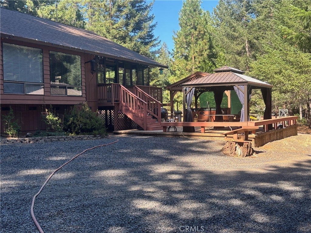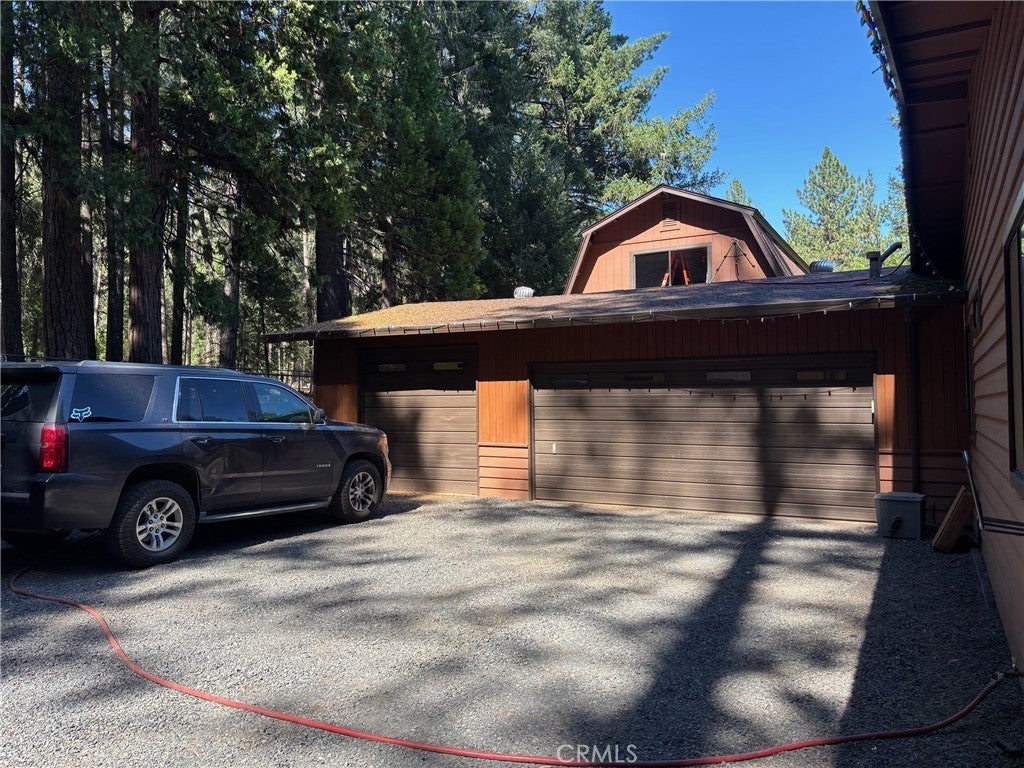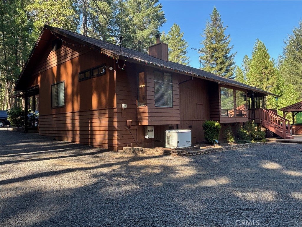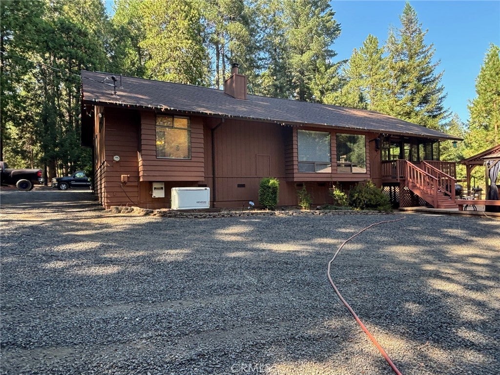 Spacious Home on 3 Private Wooded Acres with Shops, Workshop, and More Tucked away on a serene 3-acre wooded lot, this expansive home offers the perfect blend of comfort, function, and rustic charm. Step inside to an open floor plan with soaring vaulted ceilings and a spacious living room centered around a cozy wood stove with a stone hearth and surround. Just off the living room, French doors open to a sun-drenched, three-season sunroom—ideal for relaxing or entertaining year-round. The large kitchen is a dream for home chefs, featuring ample cabinetry, dual sinks, and a sunny breakfast nook. A staircase from the living room leads down to a concrete patio complete with a covered spa and gazebo with abundant seating—perfect for enjoying peaceful forest views. Attached to the home is a 3-car garage with an adjacent 600 sq. ft. heated workshop, plumbed with an air compressor. Above the workshop is a large unfinished bonus room with its own entrance—ideal for a future ADU, guest quarters, or game room. Across the driveway, you'll find a spacious metal shop with a concrete floor and two 14-foot roll-up doors—perfect for RVs, boats, or automotive projects. Additional amenities include an RV shelter with extra storage, a wood storage barn, and a Generac generator that powers the home automatically during outages. In addition to a private well, the property includes access to ditch water which fills a 1,400-gallon storage tank for irrigation and fire prevention. And did I mention the new above ground pool equipped with lights and fountains! This is a rare opportunity to own a versatile and well-appointed home in a peaceful, forested setting with room to live, work, and play—all just a short drive from town.