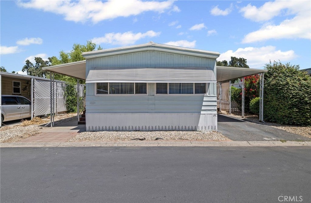 Welcome home to charming space #19! Walk right in to a bright and inviting open-floor plan. With laminate wood floors throughout, and neutral plush carpet in the bedrooms. An ample amount of cupboards, closets and storage space. Upgraded beautiful and spacious laminate kitchen counters, built-in microwave, and a gas range. An elegant light fixture and stunning custom white hutch in the nook. Cherry white cupboards in the bathrooms with lovely pedetstals. Nice sized laundry room including a washer and dryer. Established neighboring trees and bushes providing extra privacy. Generously sized covered patio and private parking. A clean and quaint community pool to cool off on hot summer days or enjoy the clubhouse for entertaining. Space rent provides access to the pool, clubhouse with all it's uses and covers your water, sewer and garbage costs.