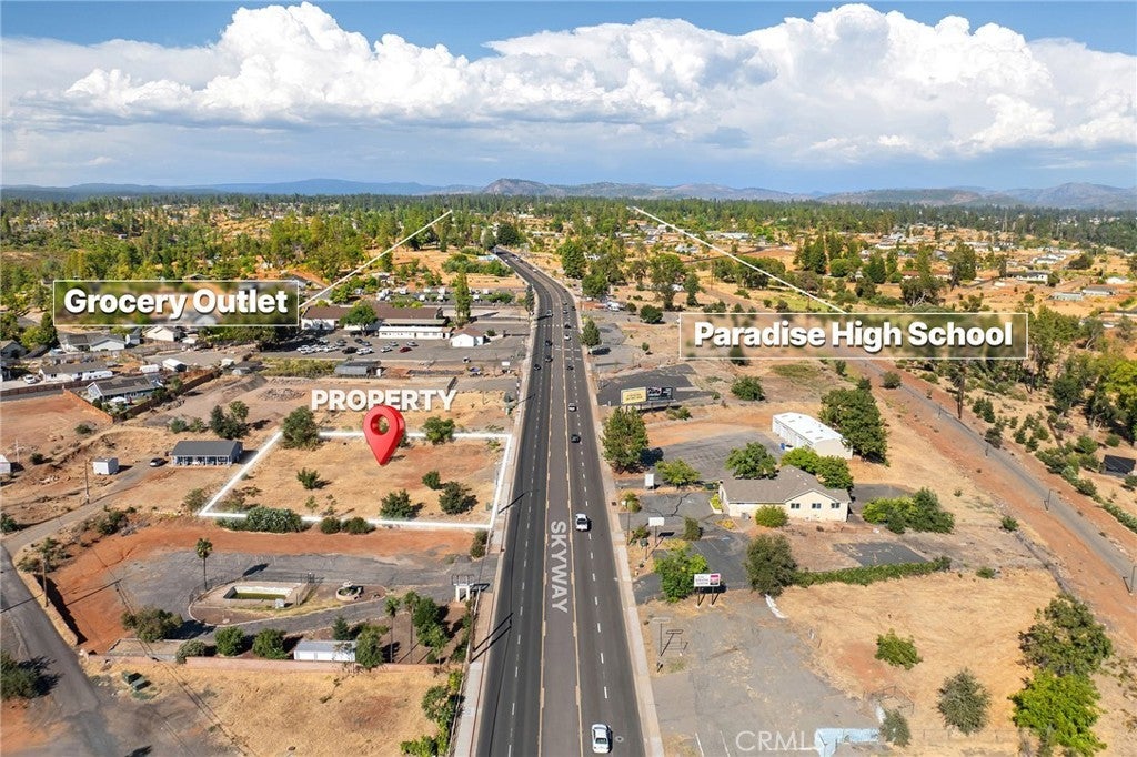 Gateway to Paradise – Prime Commercial Opportunity! Welcome to a property that offers both exceptional visibility and unique flexibility. Located at the gateway of Paradise, this expansive 0.69-acre parcel zoned Community=Commercial l features 152 feet of prime frontage along Skyway, one of the most traveled roads in and out of town. Its strategic location—just south of Paradise Town Hall—places it at the center of activity and growth in this revitalizing community. With completed sidewalks and a convenient turn lane, the property is already set up for easy access and maximum exposure. What makes this parcel truly stand out is its potential. Beyond its outstanding commercial possibilities, there is also the option—with Town of Paradise approval—to incorporate a residential component, such as a home of up to four bedrooms. This opens the door to a variety of possibilities: a live/work space, a mixed-use design, or a creative investment that combines business with lifestyle. As Paradise continues to grow and rebuild, opportunities in such a high-profile, accessible location are rare. Whether you’re an investor, developer, or business owner, this property provides the perfect canvas to bring your vision to life at the entrance to Paradise.