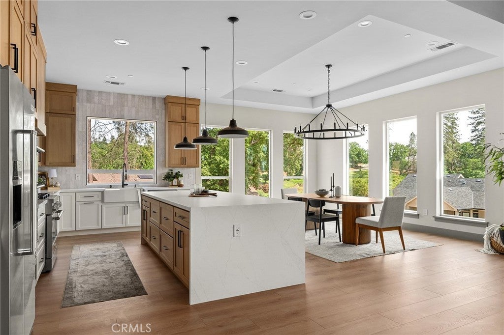 Welcome to this west-side Paradise gem—where quality upgrades and location truly shine. This home boasts a 50-year presidential roof, a custom-engineered deck railing and staircase leading to an expansive concrete patio, plus extensive hardscaping and a secondary driveway that add both beauty and function. The wide property also offers plenty of room for a future shop or ADU, along with valuable under-house storage. Nestled in one of Paradise’s most sought-after established neighborhoods of custom homes with stunning sunset and distant valley views, the setting is as impressive as the home itself. Inside, you’ll find thoughtful details throughout—a custom kitchen with white oak cabinetry, fluted wood accents, quartz countertops, and upgraded tile backsplash, plus a striking living room built-in beneath a tall box-beamed ceiling. Every space was designed with both comfort and craftsmanship in mind, creating a timeless style that feels elegant yet inviting. With its ideal location, usable outdoor spaces, and premium finishes, this property perfectly blends practicality with beauty—an opportunity not to be missed.