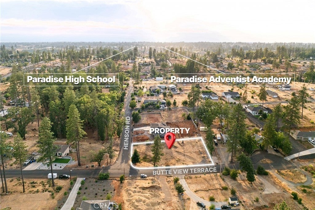 Discover the perfect spot to build your dream home on this .4-acre corner lot at Butte View Terrace and Henson Road — the former site of a 3-bedroom home. Located in a charming neighborhood that’s quickly being rebuilt, this property offers an immediate sense of community while maintaining peace and privacy. Tucked back off Pearson, you’ll enjoy a quiet setting with the convenience of quick access to Oroville in one direction and Chico in the other. Love the outdoors? You’re just a 10-minute drive to Lime Saddle Marina, perfect for summer boating, fishing, or relaxing by the water. Families will appreciate the easy drive to all Paradise schools, making this a prime location. With a few beautiful mature trees already on the property, you have the ideal backdrop to design your perfect retreat. Don’t miss your chance to make this little slice of Paradise yours! Septic condition is unknown. PID is inactive.