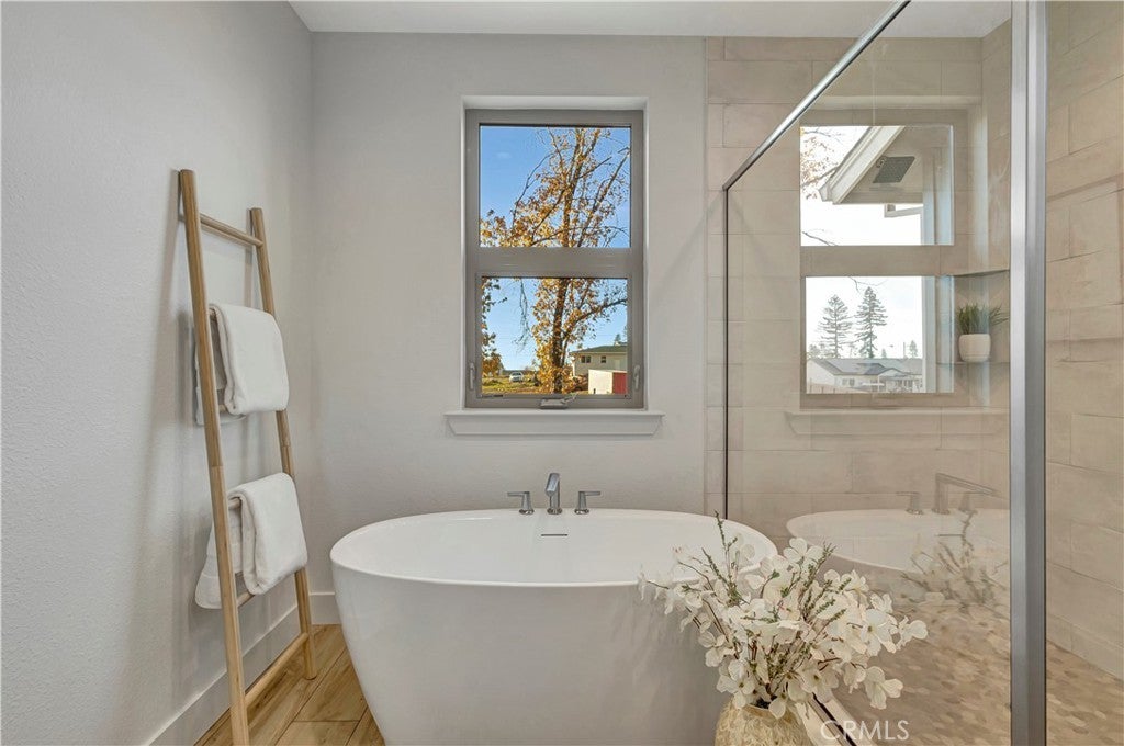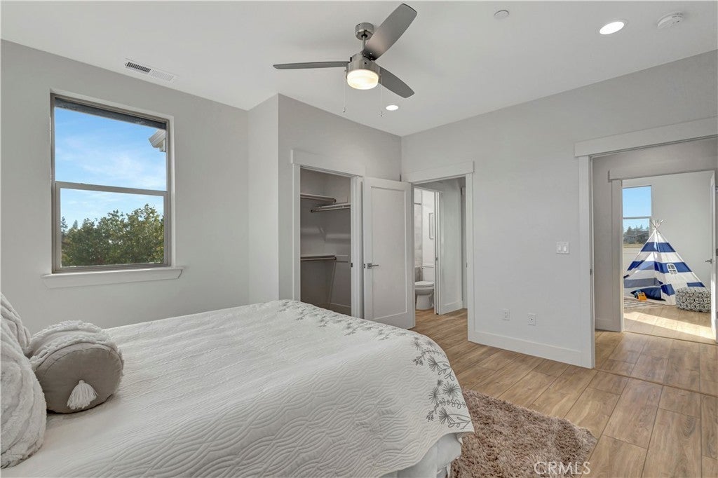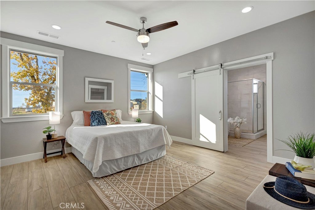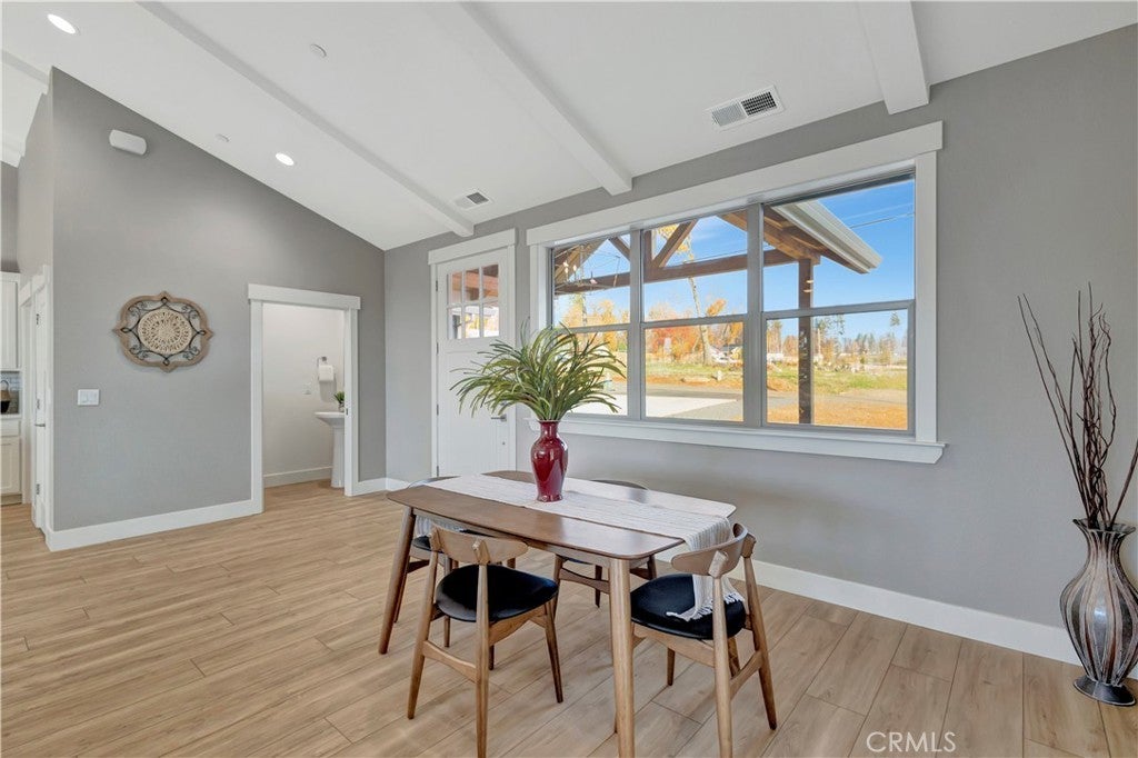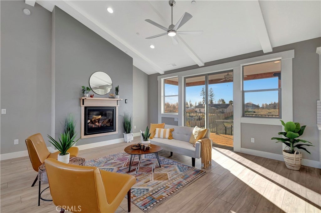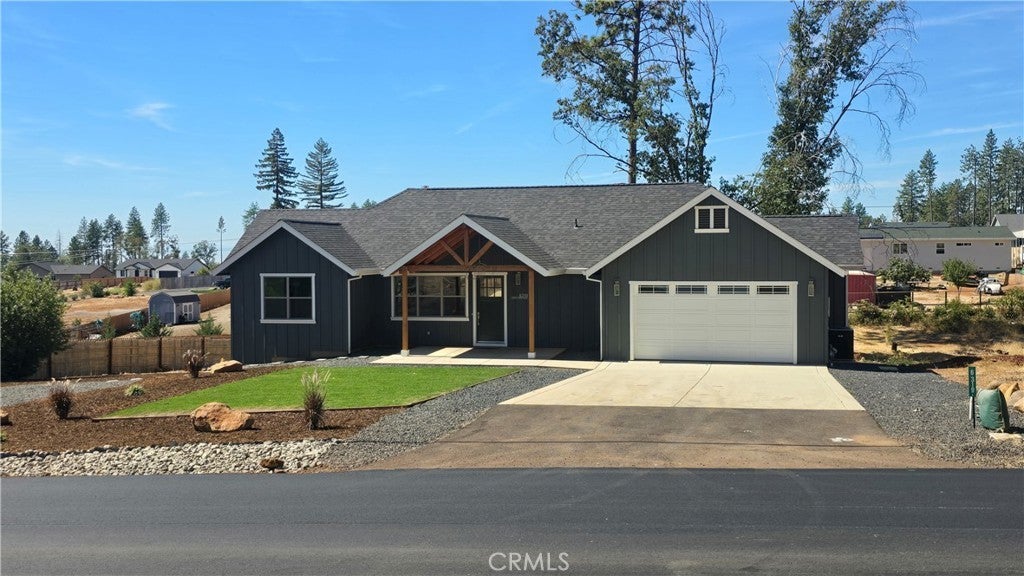QUALITY BUILT FROM TOP TO BOTTOM!! This 3-bedroom, 2.5-bath beauty boasts 1980 sqft of living space that is nestled on just over a half-acre with a landscaped front yard, graveled side yard RV access, beautiful covered front porch and large covered back deck with views to the coast range & valley. As you enter the house, you are greeted by a grand living space filled with an abundance of natural light streaming through large windows. The beamed ceilings add depth and character to the space & the gas fireplace creates a cozy and welcoming ambiance. The gourmet kitchen is a culinary enthusiast's dream comes true and is equipped with soft close drawers, top-of-the-line stainless steel GE Cafe brand appliances and a large walk-in pantry you will love! The quartz countertops provide ample space for meal preparation, room for counter-top appliances and a large center island with seating access! The sliding glass doors lead you to the covered back deck, complete with two outdoor ceiling fans, providing beautiful views to the valley and amazing sunsets, blending indoor and outdoor living! Whether you're enjoying a morning cup of coffee or hosting a summer barbecue, this space is perfect for relaxing and entertaining alike. Designed with comfort and privacy in mind, this home boasts a split floor plan, placing the primary bedroom on the opposite side of the house from the guest bedrooms. Your primary bedroom is a sanctuary that offers a tranquil retreat with ample space & large walk-in closet. The en-suite bathroom features a luxurious walk-in shower, separate soaking tub, double sinks and modern fixtures. Adjacent to the primary suite, is the laundry room specially designed for your space saving stackable washer and dryer featuring both natural gas and electric dryer hookups as well as lots of cabinets & countertop space and a utility sink. The guest bedrooms are thoughtfully designed, each with its own walk-in closet, ceiling fan, and large windows for an airy and comfortable feel. Sharing a convenient Jack and Jill bathroom between them with a semi-private vanity & sink area and a fully private bathroom space for privacy and comfort. Additionally, there is a 1/2 bathroom for your visiting guests off the living room. The large yard features a seasonal creek in the back, plenty of RV & extra parking, lots of room for gardening as well as room to create your own dream yard design! Only 1 mile from Bille Park, downtown Paradise and a quick 12 Mile drive to Chico!