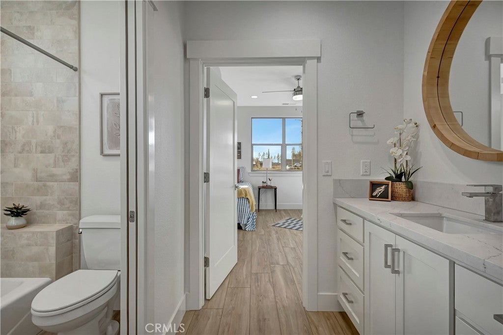 • Interior FeaturesBeamed Ceilings, Breakfast Bar, Ceiling Fan(s), Separate/Formal Dining Room, High Ceilings, Living Room Deck Attached, Open Floorplan, Pantry, Quartz Counters, Recessed Lighting, Unfurnished, All Bedrooms Down, Jack and Jill Bath, Main Level Primary, Primary Suite, Walk-In Closet(s), Bedroom on Main Level, Storage, Utility Room, Walk-In Pantry