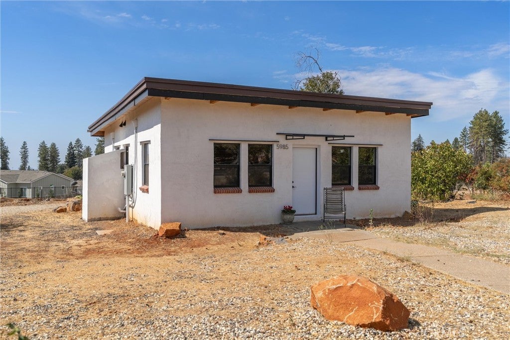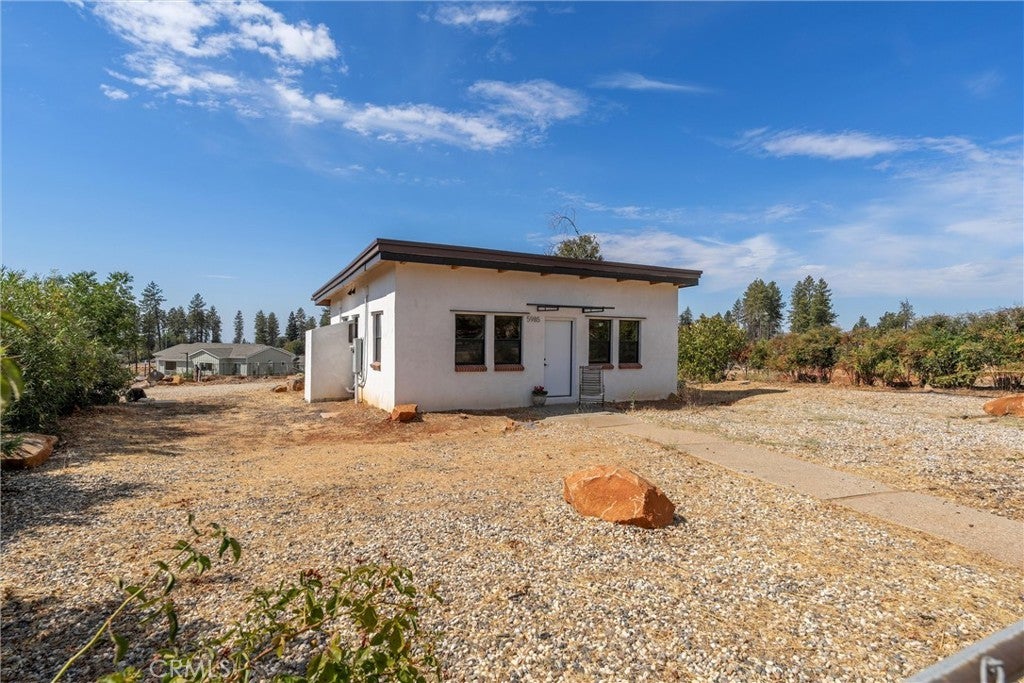 Modern Mediterranean Retreat in Downtown Paradise. 1 Bed | 2 Bath | 800 Sq Ft | 0.17 Acre Lot | Built in 2023. Discover this thoughtfully designed Mediterranean-style home nestled in the heart of Paradise. Built in 2023 with fire safety and energy efficiency in mind, this 1-bedroom, 2-bath retreat offers a unique blend of style, sustainability, and convenience. Key Features: Concrete block construction with added insulation for enhanced quiet and thermal performance; Colorized concrete flooring for durability and modern flair; Tongue-and-groove pine ceilings with exposed wood beams for warmth and character; Stylish glass fixtures throughout the home; Stainless counter and sink for ease and style; Stucco exterior finish for a clean Mediterranean look; Energy-efficient systems including a heat pump water heater and mini-split HVAC; Partially fenced yard with room to personalize or expand; Ample street parking for guests; Close proximity to local amenities, including tennis courts and a track—perfect for active lifestyles. Previously used as a rental, the seller is ready to move on to their next project. Whether you're looking to downsize, invest, or enjoy a peaceful retreat, this property offers a rare opportunity to own a modern, fire-conscious home in a vibrant community.