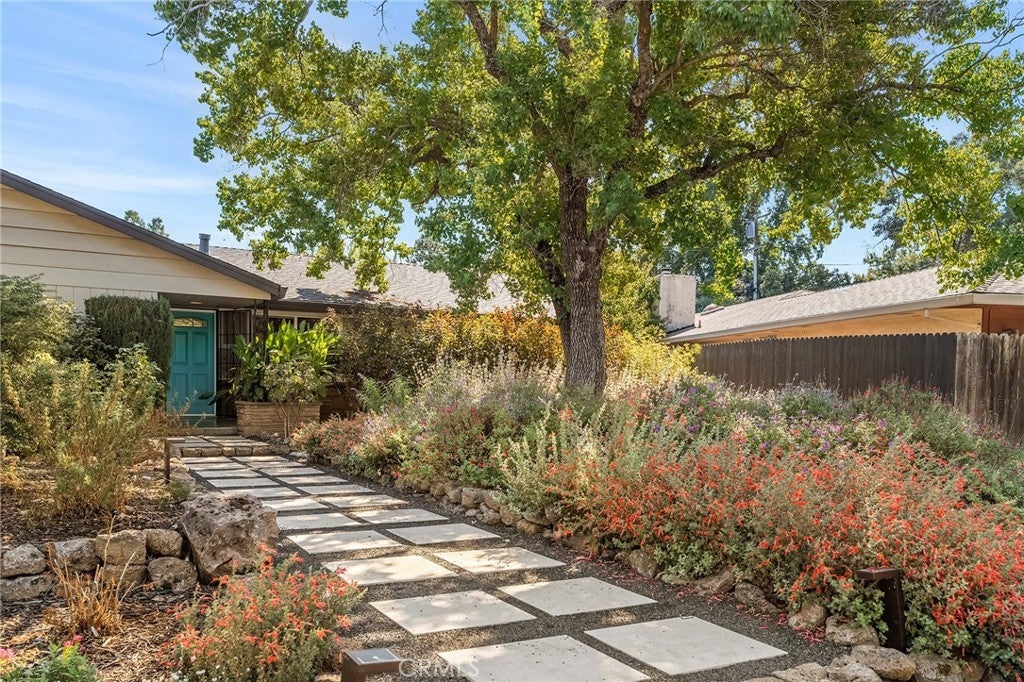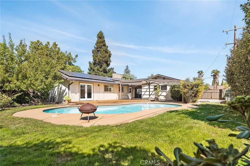 Back on the Market at no fault of the seller. Now is your chance to get this Mid-Century Modern Charm Home with Pool, Owned Solar, RV Parking & more! This stunning 3 bedroom, 2 bath home with an office or bonus room is full of character and modern upgrades that make it truly special. Located in a desirable Chico neighborhood with a convenient central location, this stunning mid-century modern home offers the perfect blend of comfort, convenience, and timeless design. From the moment you arrive, you’ll appreciate the curb appeal, the lush, fully landscaped front and back yards featuring a mature apricot tree, 2 avocado trees, raised garden beds, and RV parking with full power and hookups, making it easy to welcome guests or store your toys. Inside, you’ll find an inviting floor plan filled with natural light from large picture windows that showcase the home’s warm and welcoming feel. Beautiful hardwood floors flow throughout the main living areas, while newer patterned tile adds style and elegance to the kitchen and baths, creating a perfect balance of warmth and sophistication. The spacious living room features a cozy gas fireplace, ideal for relaxing evenings or entertaining guests. The remodeled kitchen offers new quartz countertops, newer stainless steel appliances (all included), an eating bar for casual dining, and tile flooring that ties the space together beautifully. Every detail of this home has been thoughtfully enhanced, with upgrades that include a newer water softener, tankless water heater, whole house fan, and OWNED solar for energy efficiency and peace of mind with the roof only 5-6 years old. Step outside to your private oasis, an entertainer’s dream complete with an in-ground pool and built-in hot tub. The breezeway connecting the home and garage adds both charm and functionality, creating the perfect spot to relax in the shade or enjoy poolside gatherings. The fully landscaped yard is ready for your outdoor lifestyle, from gardening to weekend barbecues. With its desirable location, stylish updates, and unmistakable mid century modern appeal, this home offers the perfect balance of character, efficiency, and everyday comfort.