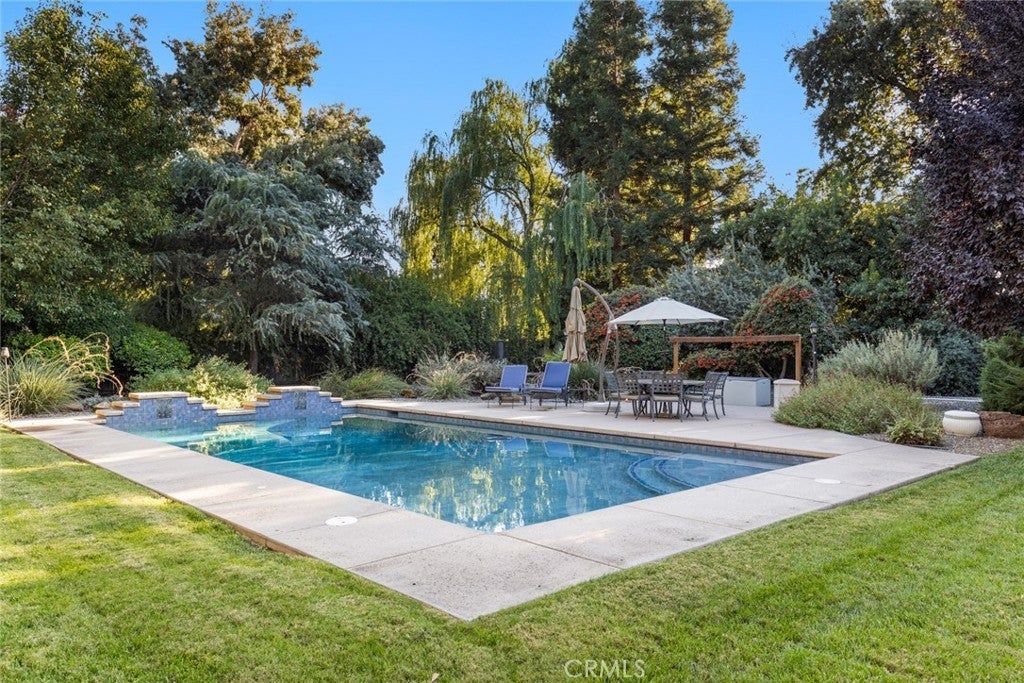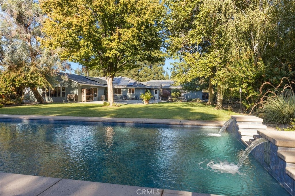 Exceptional North Chico home on an oasis like 1.48-acre parcel. Featuring 3beds/3baths plus office or 4th bed, custom wood craftsmanship and built ins throughout, gourmet kitchen with island, and a huge 24'x39' family room with wet bar. Enjoy formal living and dining, a spa like master suite and a cozy wood-burning fireplace. Outside offers lush landscaping with an in-ground 20x40 salt water pool, outdoor shower, expansive patio, two raised garden bed areas, chicken coop, and plenty of RV parking. The 12x13 shop features both vaulted and covered concrete storage. Includes 3-car garage and 13.7KW solar system w/ generator hookup. A rare blend of craftmanship, comfort, and outdoor living. This property truly has it all! Check it out.