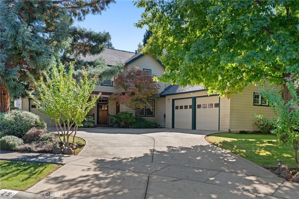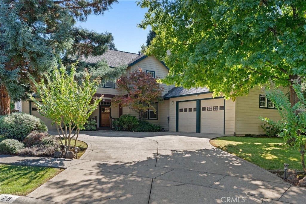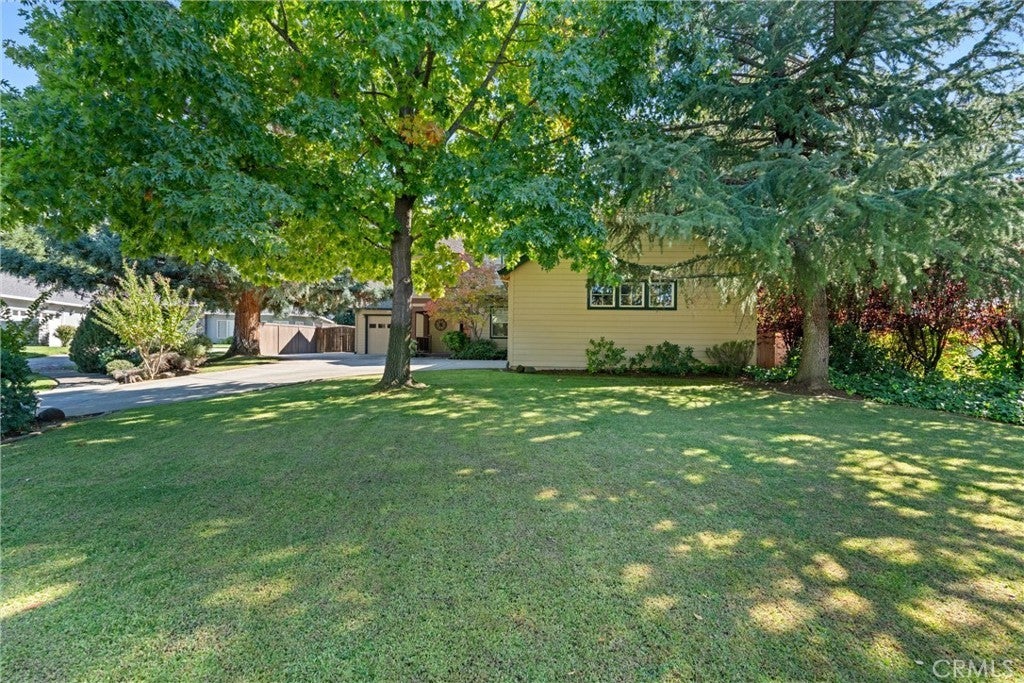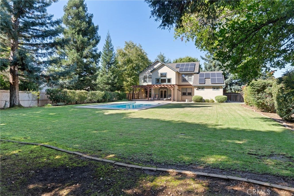 This charming 3-bedroom, 3.5 bath home perfectly blends comfort, convenience, and sustainability. Nestled on a quiet cul-de-sac just steps from Bidwell Park, a local coffee shop, and shopping, this home offers the ideal balance of tranquility and accessibility. Tall redwood trees in the spacious backyard offer plenty of privacy to relax by the pool. This home features a few separate living spaces for all your needs, including a living/family room, a cozy den, and an office. A half bathroom off of the exterior of the home provides convenience for guests while using the pool. Home has beautiful hardwood floors, a spacious kitchen island, soaring living room ceilings, stone fireplace, and owned solar. Don't miss the rare opportunity to own a beautifully maintained home in this sought after neighborhood!