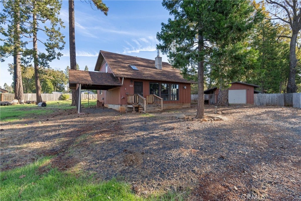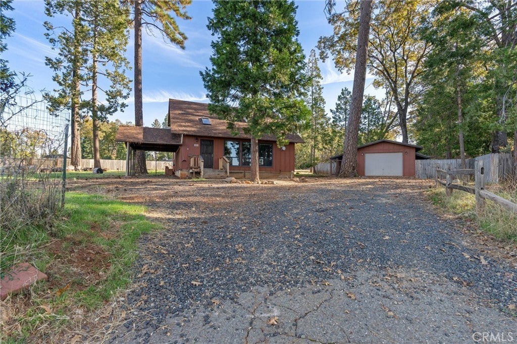 Spacious Paradise Pines Home with Extra Lot & Endless Potential! Tucked away at the end of a peaceful cul-de-sac, this 3-bedroom, 2-bath home offers 1,372 square feet of living space on a generous .37-acre parcel — plus the adjoining .25-Acre vacant lot that previously held a 2-bedroom, 2-bath, 1,440 sq. ft. home! This unique package provides an incredible opportunity for expansion, investment, or simply extra space for all your toys, gardens, and projects. Step inside to discover a large open living room with soaring ceilings, creating a bright and airy atmosphere perfect for relaxing or entertaining. The central kitchen is conveniently located near the laundry room, a downstairs bedroom, and a full bath, making the layout practical and flexible for guests or multi-generational living. Upstairs, you’ll find two additional bedrooms connected by a Jack-and-Jill bathroom, offering comfort and functionality. Outside, the property features a detached two-car garage, an attached carport, and a spacious yard with endless possibilities. Whether you envision a garden, workshop, or recreational area, there’s plenty of room to make it your own. Located within the desirable Paradise Pines Property Owners Association, residents enjoy access to hiking trails, sports courts, a swimming pool, and more — all while being just minutes from groceries, gas, and everyday conveniences. With space, potential, and location all rolled into one, this is a fantastic opportunity to update and create your dream home in beautiful Paradise Pines. Don’t miss your chance to see it!