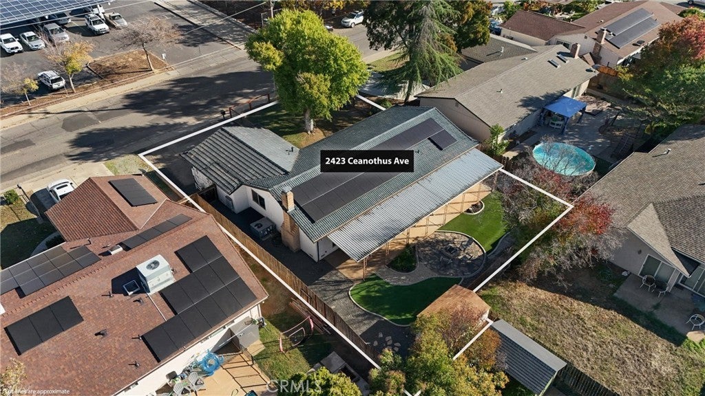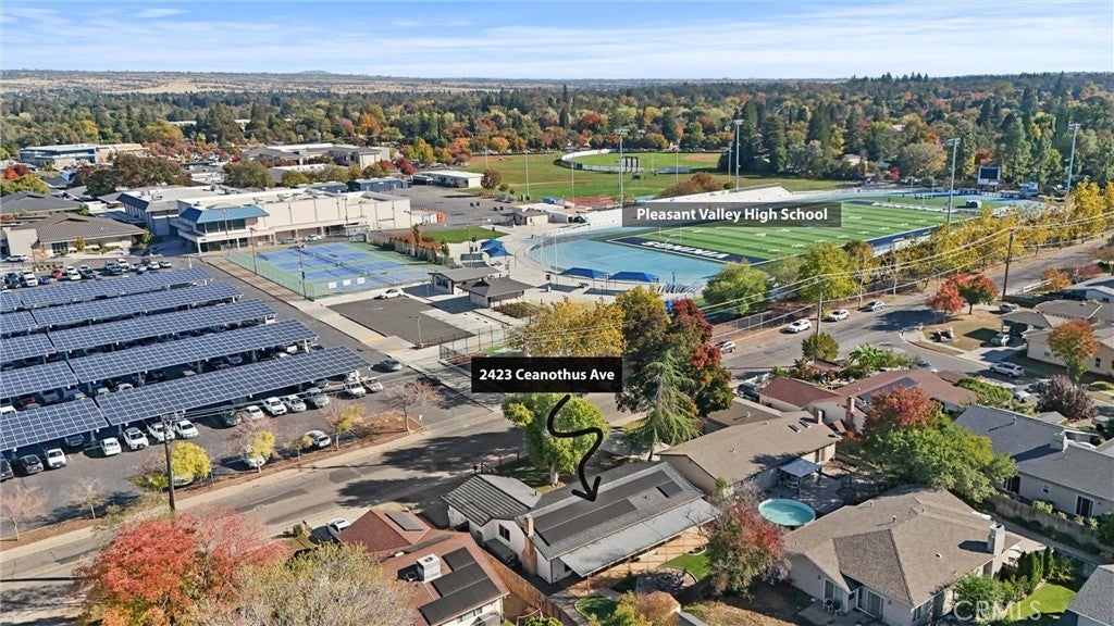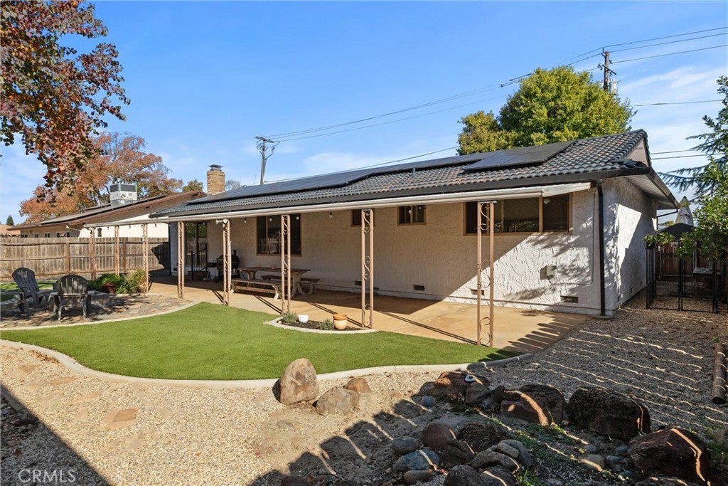 Welcome to a home where comfort, convenience, and community come together in one of Chico’s most desirable locations. Situated in a prime north Chico neighborhood, this beautifully updated 3-bedroom, 2-bathroom home spanning 1,672 sq. ft. has been lovingly cared for and thoughtfully improved, offering both modern upgrades and meaningful spaces to truly live in. From the moment you arrive, you’ll feel the warmth this property offers. The fenced front yard has been a favorite spot for the sellers, perfect for watching kids play under the shade of the large front yard tree, practically made for a swing. Enjoy morning coffee or dine outdoors on either the front or back patio, each offering its own peaceful setting to start or end the day. Inside, the layout is inviting and purposeful. The cozy sunken living room sets the stage for family movie nights, relaxing with a book, or gathering with loved ones. The kitchen and dining spaces flow easily for everyday living and entertaining, and the HUGE covered back patio provides an exceptional space for BBQs, celebrations, and year-round enjoyment. The low-maintenance backyard turf keeps upkeep simple and weekends free for fun. The guest bathroom features a deep soaking tub, ideal for unwinding after a long day, while the primary suite includes updated vinyl flooring in the bathroom and closets. Fresh interior paint throughout gives the home a bright, clean feel. Living here means more than just enjoying a beautiful home; you get a lifestyle. The sellers have loved the convenience of having a grocery store nearby, the energy of community events right across the street at PV High School, and being just a short drive or bike ride to Upper Bidwell Park, Wildwood Park, and Chico’s endless outdoor recreation, including trails, disc golf, swimming, biking, and scenic nature escapes. Additional highlights include an 8.54 kW Leased Solar System with battery backup, helping keep utility costs low and offering peace of mind, plus new vinyl flooring in the primary bath and closets. With a location that checks every box and upgrades that make daily living effortless, 2423 Ceanothus Avenue isn’t just a place to live; it’s a place to thrive.