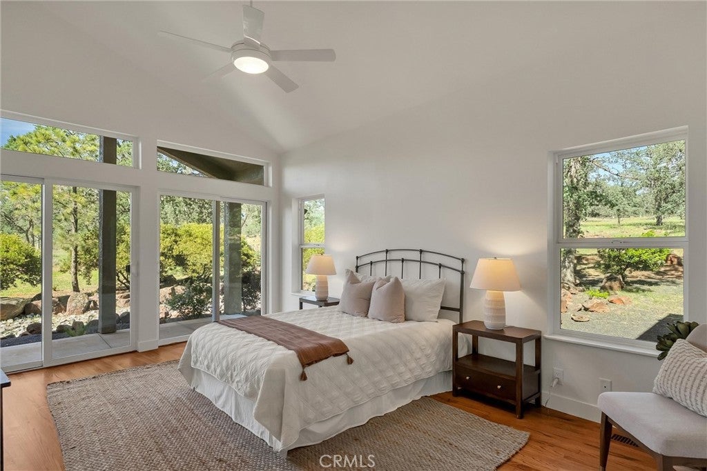 This stunning 40 acre property at offers the perfect blend of luxury and privacy. Boasting a beautiful 3-bedroom, 3.5-bath home with en-suite bathrooms in each, it provides a comfortable and elegant living space. The property is well equipped with modern amenities including 32 owned ground-based solar panels and 2 Tesla Powerwalls, ensuring energy efficiency and sustainability. The remodeled kitchen features honed granite countertops, a built-in refrigerator, and custom cabinetry from Chico Wood Craft. The master bath includes a heated floor and curbless shower entries, adding to the home's luxurious feel. Additional highlights include hot water recirculating system, a built-in pellet stove with thermostat, hardwood floors throughout, designer light fixtures, and automatic irrigation. The home also features a Big Ass ceiling fan in the living room and two patios for outdoor enjoyment. For those with hobbies or projects, the property offers a small shop with an air system in the garage, cabinets, workbench, and an electric car charger. Outbuildings include a well house, Tesla Powerwalls, and a shed. The gated access, private road, septic system, and AT&T fiber and WiFi ensure privacy and convenience. The Homeowners Association fee of $700 a year covers the gate and road maintenance, adding peace of mind. Don’t miss the chance to own this exquisite property in a serene setting.