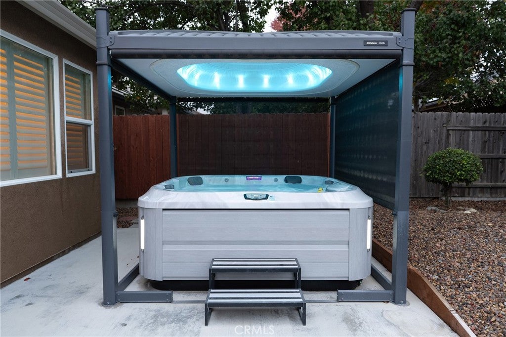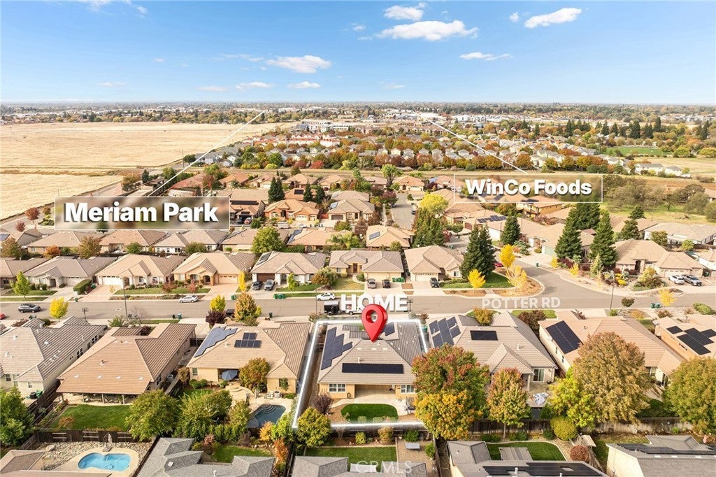 Beautifully updated 4 bedroom, 3 bathroom 2,341 SF home with owned solar and modern kitchen. The stylish interior features high ceilings creating an open, airy feel. All 4 bedrooms are spacious and have full sized closets. The Primary suite is situated in the back corner of the home providing privacy and includes a massive dual sink vanity and oversized walk in closet. Recessed lighting and luxury vinyl plank flooring in common areas. Full sized indoor laundry room with sink and extra cabinetry. The 44 panel, 10.73 kW owned solar system includes 2 battery back up units. The tastefully landscaped back yard is equipped with a Jacuzzi and Covana Oasis electronic cover which lifts with a push of a button, has sun shades and colorful lights! If you enjoy a home gym, the two car garage is the perfect spot because there is a mini split air conditioner/heater already installed. The tile roof is built to last on this 2016 built home. Near Meriam Park and shopping. Get anywhere in town quickly with close access to Bruce Rd, Skyway Hwy 32 and Hwy 99.