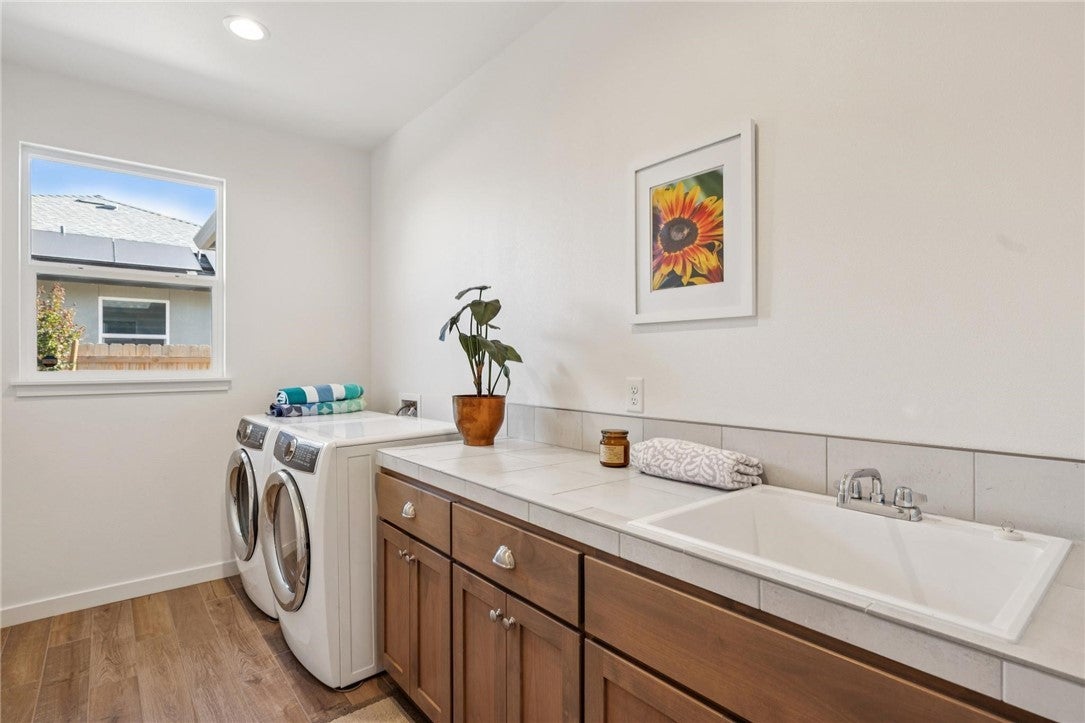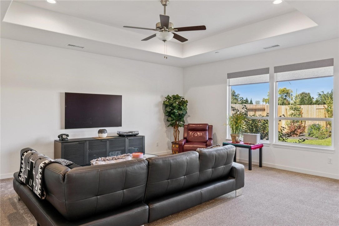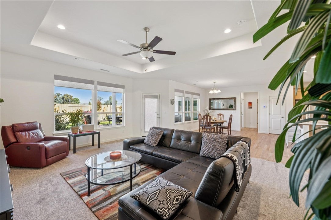 Welcome to 314 Bainbridge Place, a stunning 2025-built Bill Webb home in the new Hicks Lane subdivision, where elevated design, energy efficiency, and modern comfort come together beautifully. Spanning 2,257 sq. ft. with 3 bedrooms, 3 bathrooms, and a den, this thoughtfully upgraded home blends luxury and livability in every detail. The entry welcomes you with 11-foot ceilings, tile-like wood floors, and upgraded recessed lighting. A versatile den sits off the entry, perfect for an office, gym, or cozy retreat, and plantation shutters throughout add a custom, high-end touch. The great room is the heart of the home, featuring a tray ceiling, large windows framing the backyard, and an effortless connection to the gourmet kitchen. Designed for both beauty and function, the kitchen showcases quartz countertops, a huge island, soft-close cabinetry, generous storage, and premium GE stainless steel appliances, including a 36” cooktop, built-in oven, microwave, and Zephyr hood. Whether you’re hosting or enjoying a quiet meal, this space truly shines. The split-bedroom floor plan places the primary suite in its own private wing. This relaxing retreat includes a ceiling fan, plush carpet, private backyard access, and a spacious walk-in closet with storage shelves. The ensuite features dual sinks, a soaking tub, and a beautifully tiled walk-in shower. Two additional bedrooms offer great size and natural light, while the guest bath includes quartz counters and contemporary finishes. A stylish half bath is perfectly placed for guests. Just off the oversized 3-car garage, the laundry/mud room offers a large utility sink, a shoe closet, and generous storage, keeping everything organized with ease. The backyard was recently designed and landscaped to create a peaceful, low-maintenance escape. Enjoy the 18-ft covered patio, mature plantings, and additional concrete pads that offer flexible spaces for dining, lounging, or entertaining. This fully electric home is built for long-term efficiency and comfort, powered by 20 Owned Solar Panels (including 11 added to the base system) paired with an Enphase IQ Battery 5P, an advanced AC-coupled system with 5.0 kWh usable energy capacity, known for its reliability, safety, and simplicity. With every finish thoughtfully selected and every space beautifully crafted, 314 Bainbridge Place offers the perfect blend of elegance, convenience, and the exceptional quality that Bill Webb Homes is known for.