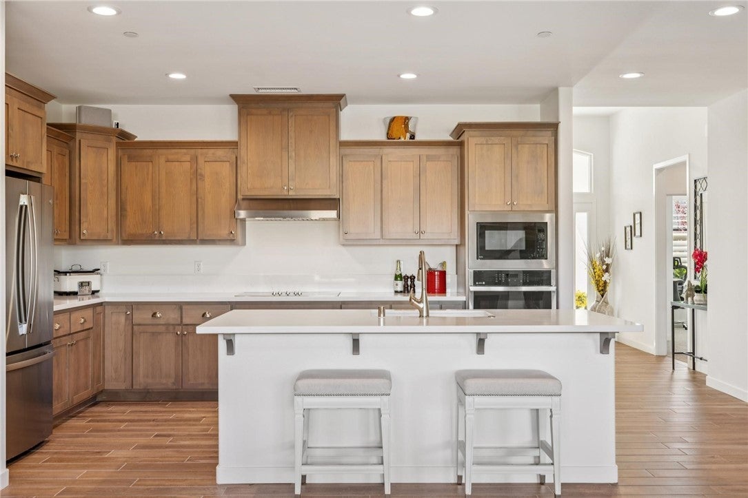 • AppliancesBuilt-In Range, Dishwasher, Electric Cooktop, Electric Oven, Free-Standing Range, Disposal, Microwave, Range Hood, Self Cleaning Oven, Vented Exhaust Fan, Water To Refrigerator, Water Heater