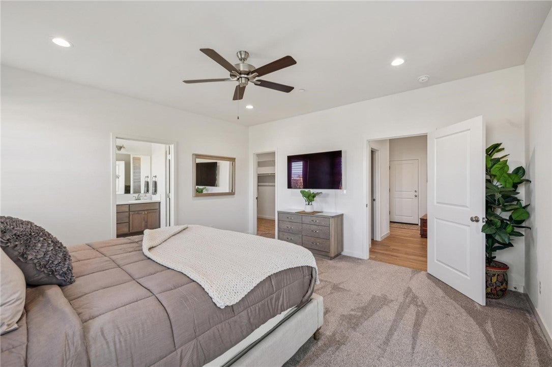• Interior FeaturesBreakfast Bar, Ceiling Fan(s), High Ceilings, Open Floorplan, Pantry, Quartz Counters, Recessed Lighting, Storage, Entrance Foyer, Primary Suite, Walk-In Pantry, Walk-In Closet(s)