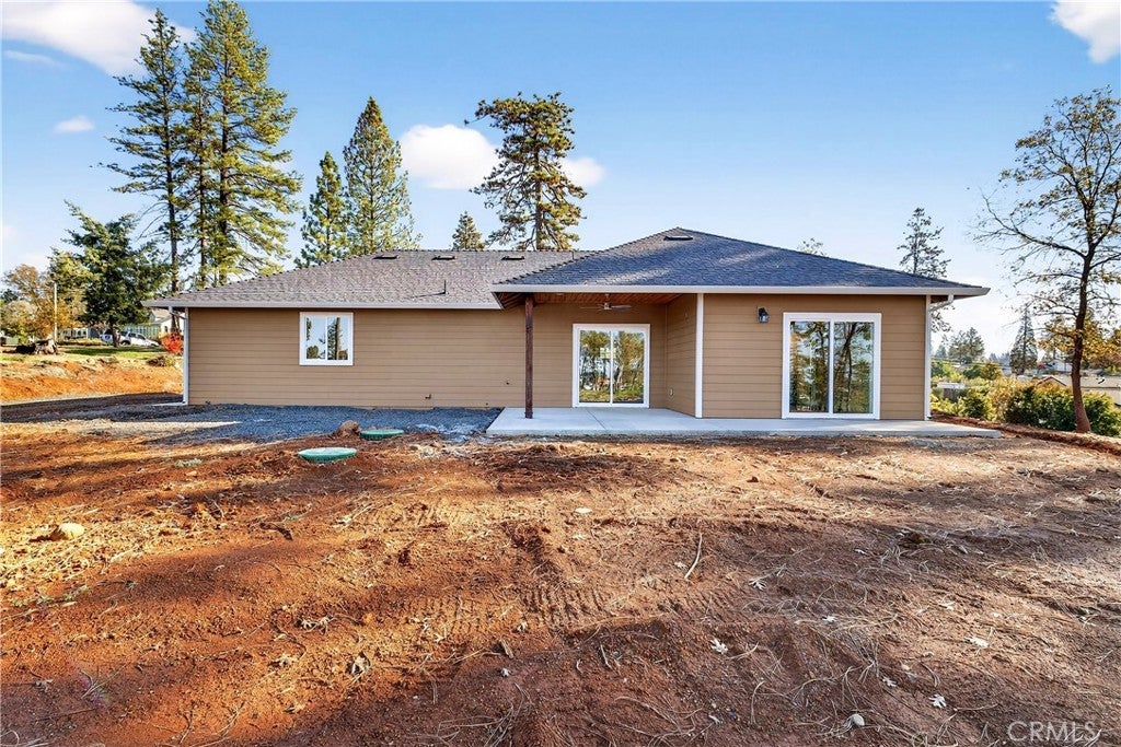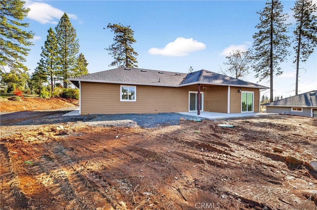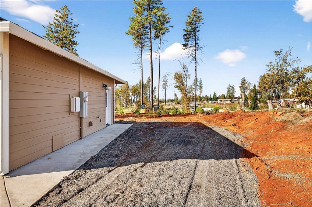Fantastic Central Paradise location for this 2025 Custom Home, built by Frost Construction a long time Paradise builder. The home offers Owned Solar 3.08 KW system, 7 panels with microinverters. An expansive .70 acre lot, plenty of room for a shop or outbuilding. R.V. parking with electricity. Landscaped front yard on drip system. Boasting a generous 1,021 square feet of living space, this home features top-notch craftsmanship and modern amenities. Upon entering, you'll be greeted by a charming 96 square foot covered front porch with a craftsman-style front door and custom shutters. Step inside to discover an open floor plan that seamlessly connects the living room, kitchen, and dining area. The kitchen is a chef's dream with granite countertops, stainless steel appliances, recessed LED and pendant lighting, and a stylish island for added convenience. The primary bedroom is a serene retreat with crown molding, a slider leading to the covered patio, and a well-appointed en-suite bathroom featuring granite counters and a step-in shower. The guest bedroom also offers crown molding and access to a sleek guest bathroom with granite countertops and a tub/shower combination. The home features gorgeous Vinyl Plank flooring throughout. Outside, you'll find a spacious 114 square foot covered patio with recessed lighting and a ceiling fan, perfect for outdoor entertaining. Additionally, the oversized two-car garage, measuring 23'5" wide by 25'10" deep, includes a laundry area. Plenty of space for a boat, trailer, or RV parking. R.V. electric hook-ups. Don't miss out on the opportunity to call this beautiful home yours!